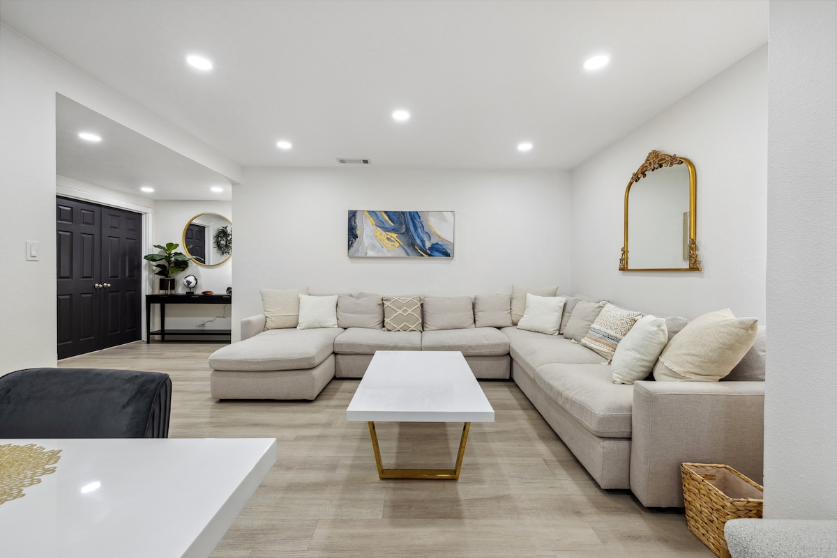 Hosted by That Yellow door! This open concept spacious home is located in sunny Fullerton, CA. Prepare meals together in our large, fully stocked kitchen that flows right into the dining and living room or BBQ in the beautiful backyard with a remodeled pool & spa. Pool and Spa are available year round to take a dip or relax in spa. Outdoor and indoor games family & friends can enjoy!