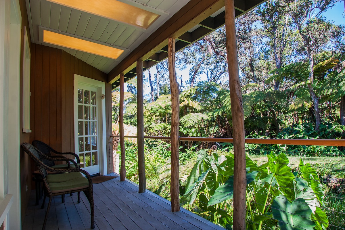 Tucked away on 3 acres of native rainforest the Pele Guest House at Volcano Village Retreat is the perfect spot to rest and relax after a day of exploring Volcanoes National Park located just 2 miles away. We can't wait to make the cottages the most perfect vacation spot for you!