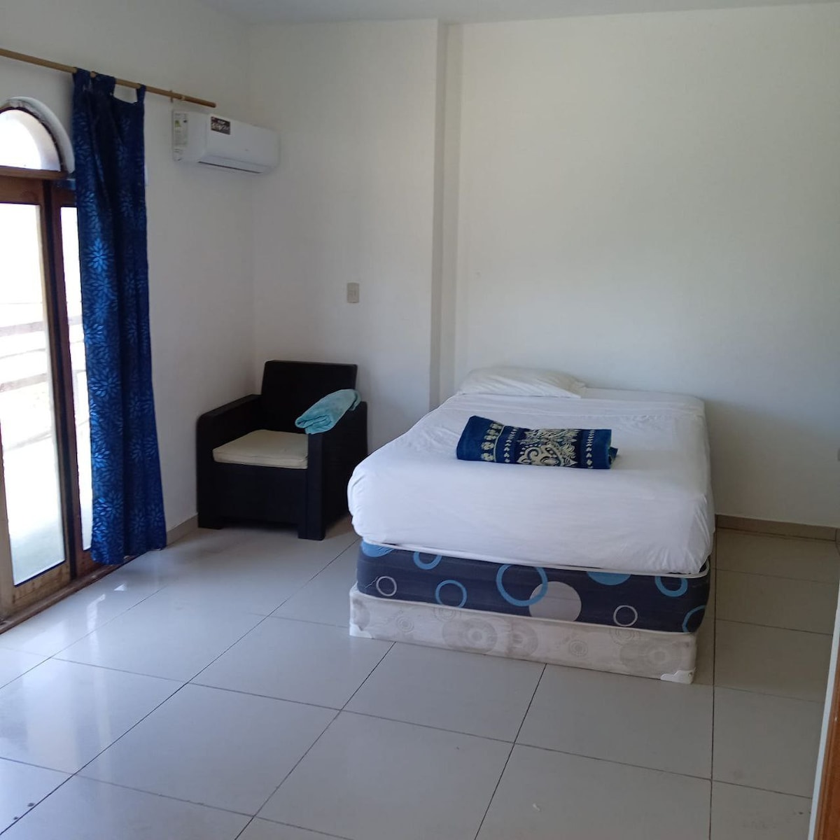A solo 50 metros de la playa y en pleno centro. Disfruta de una mini suite acogedora, segura y completamente equipada, ideal para 2 o 3 personas. Tendrás todo lo que necesitas al alcance: restaurantes, tiendas, tour operadoras y el malecón a pasos. La suite cuenta con: ✔️ 1 dormitorio privado ✔️ Cama matrimonial o cama matrimonial + cama individual (según tu necesidad) ✔️ Cocina equipada para que prepares tus comidas ✔️ Aire acondicionado ✔️ WiFi ✔️ Ambiente tranquilo y seguro