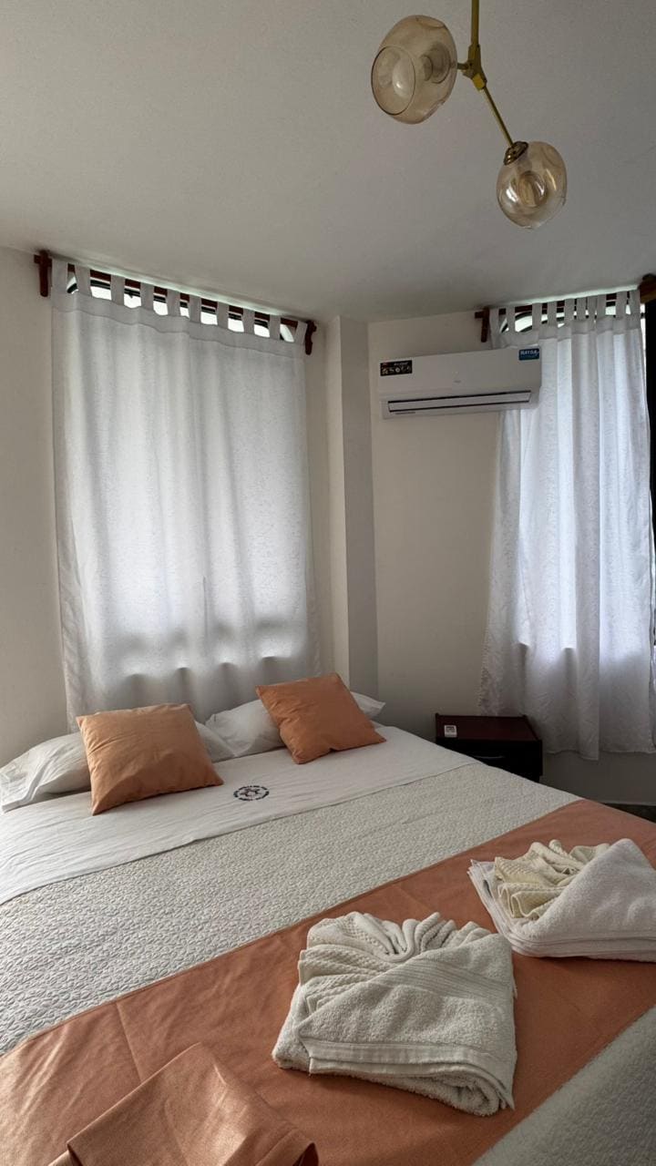Disfruta de una estancia cómoda y relajante en esta hermosa habitación privada dentro de nuestro hogar. - Habitación: amplia, privada, iluminada, agua caliente, con baño privado, wifi-Starlink, aire acondicionado. -Áreas comunes: cocina, patio, área de hamacas, terraza. -Ubicación: Jeniffer Hostal, ubicado en Isabela Galápagos, Ecuador. En el centro de la población de Puerto Villamil, a cinco minutos de la playa y cerca de restaurantes, cafeterías, operadoras turísticas, entre otros.