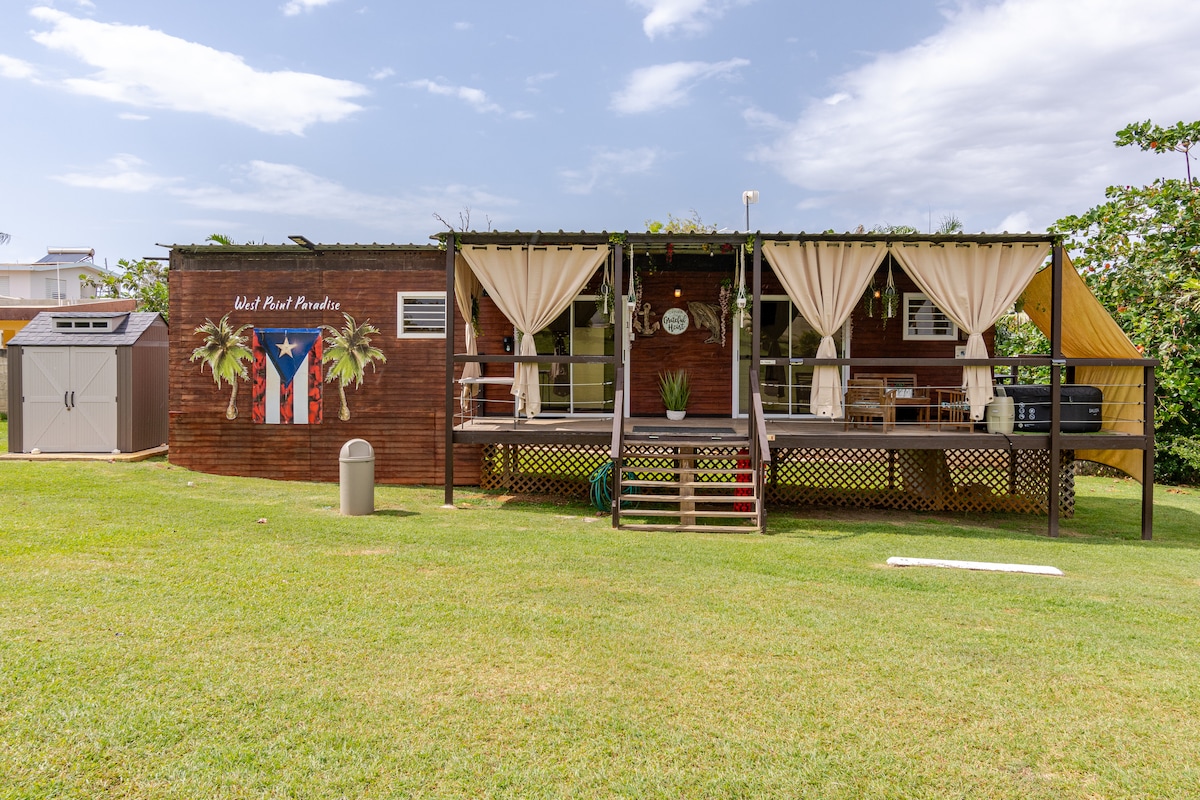 Te invitamos a descansar en el acogedor hogar que he creado junto a mis padres. Es un espacio privado lleno de silencio y paz, ¡te sentirás como en casa en el pueblo de Quebradillas! Es un vagón cómodo y espacioso con tv, aire acondicionado en el cuarto y espacio de trabajo, área de yoga/ejercicios + jacuzzi. *Pregunta por nuestras ofertas de decoración para incluirlas por un precio adicional*