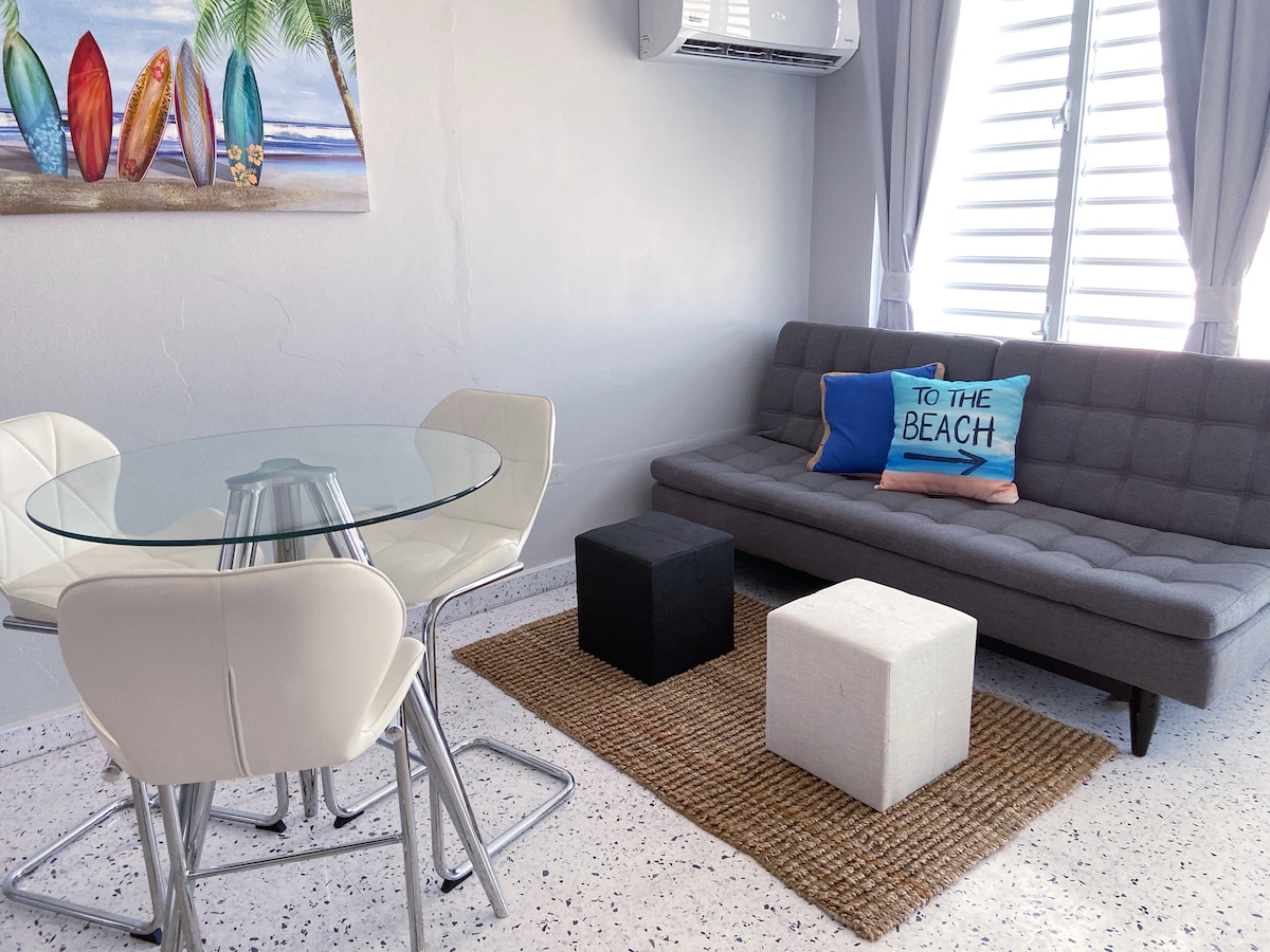 Welcome to your serene one-bedroom retreat in Aguadilla, Puerto Rico! This thoughtfully designed apartment offers comfort and style, featuring a cozy bed, private bathroom, and fully equipped kitchen. Enjoy a dedicated workstation, high-speed Wi-Fi, and a flat-screen TV. Minutes from over 10 spectacular beaches and at the heart of Aguadilla's gastronomic hub, it’s the perfect blend of relaxation and convenience for both work and leisure.