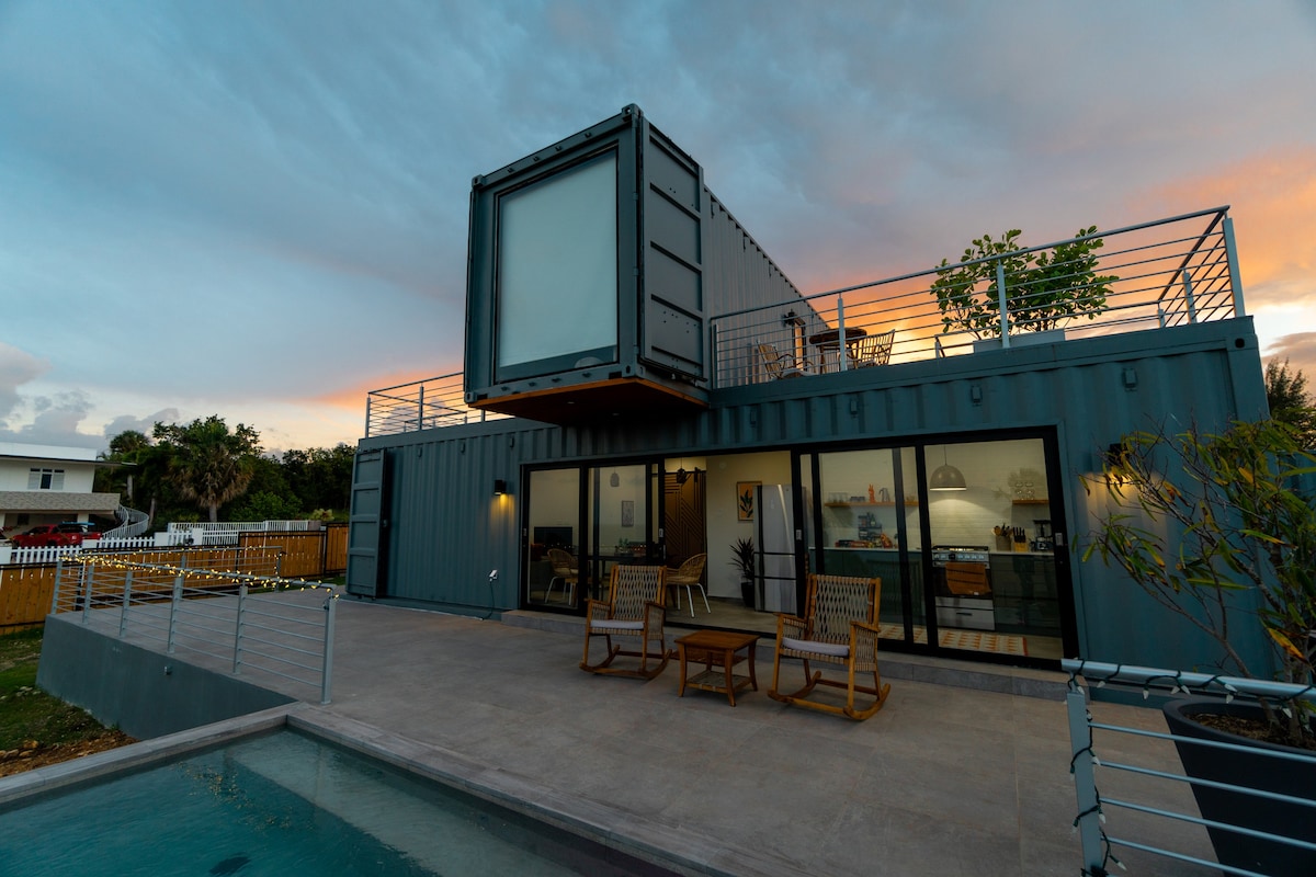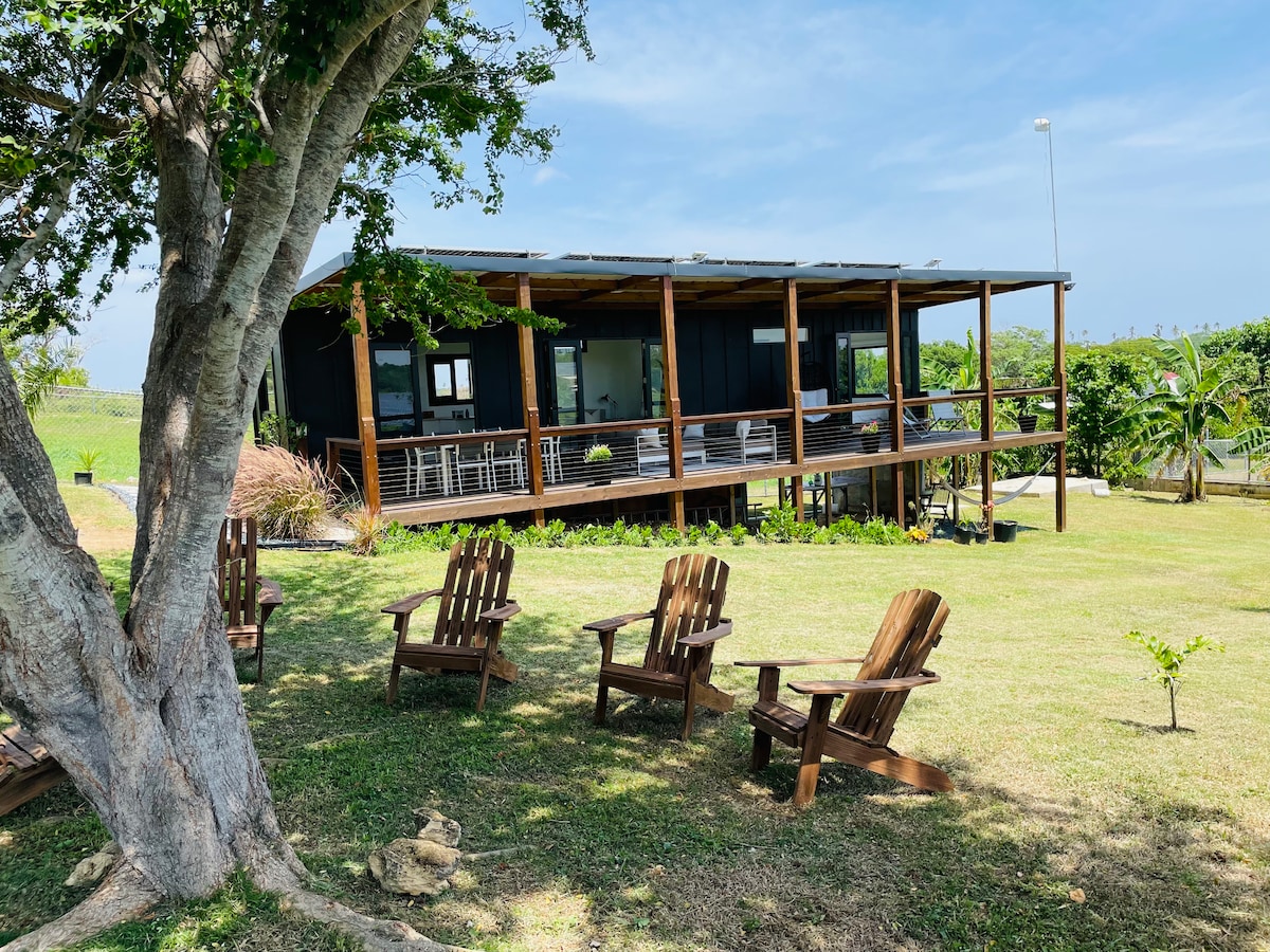 Luxurious villa homed in two beautifully upcycled shipping containers overlooking the mountains. With 3 bedrooms and 3 bathrooms, this modern industrial retreat provides a comfortable and stylish stay. You'll find an outdoor kitchen fully equipped for your culinary adventures. Relax by the infinity pool, overlooking the picturesque mountains. Situated in Moca, our location provides a peaceful retreat while being only 20-30 minutes away from the coastal towns of Aguadilla, Isabela and Rincon.