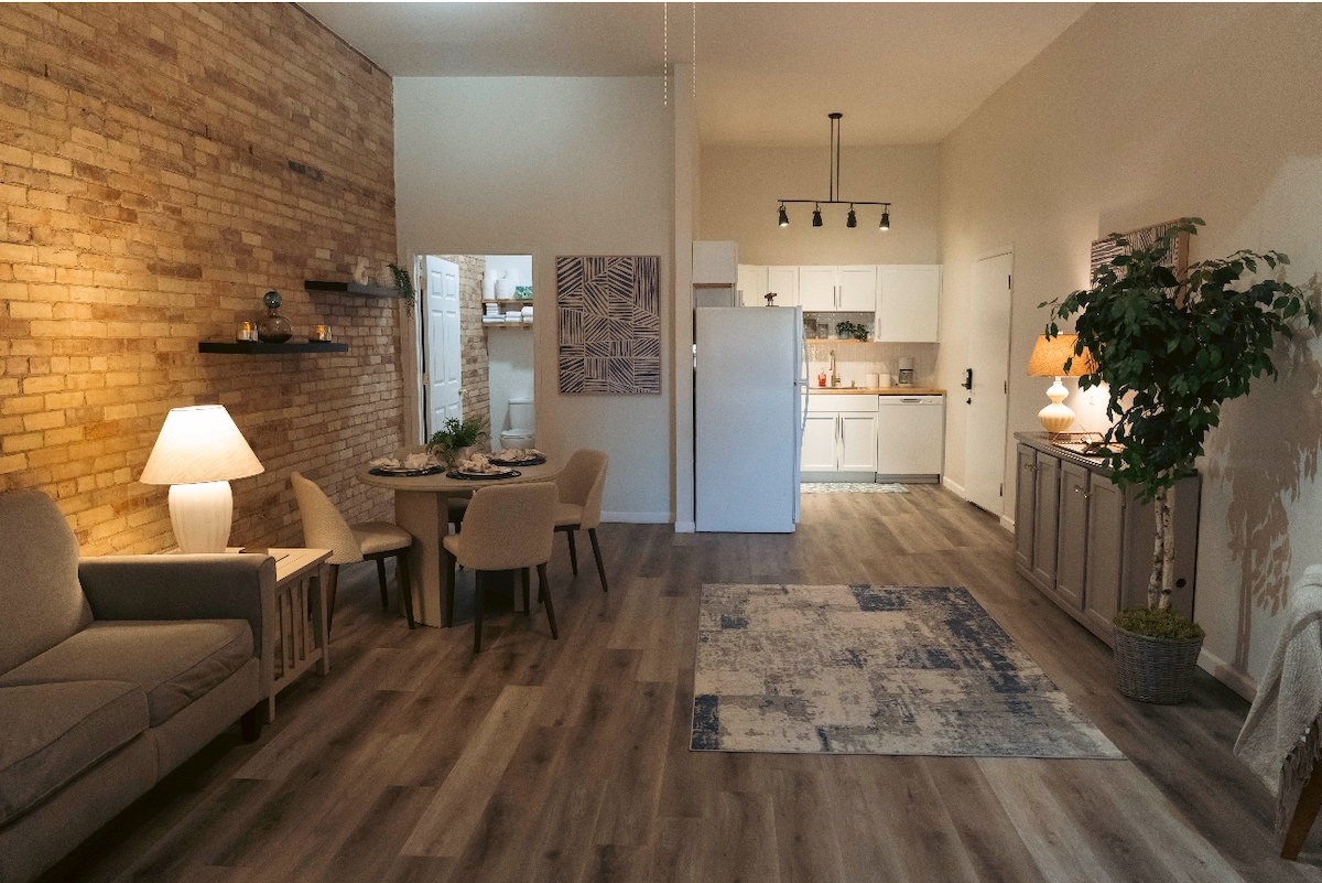 Stylish 2BR/1BA loft in the heart of downtown Mount Pleasant, steps away from bars, restaurants, shops, and parks. Fully remodeled with a modern kitchen, luxurious bathroom, premium bedding, and 65" smart TV. Both bedrooms overlook Broadway. Walkable to everything, 1.5 miles from CMU, <5 miles to Soaring Eagle. Sleeps 4. Fast Wi-Fi and all essentials included. Great for a weekend getaway, college event, or just exploring Mt. Pleasant, with a perfect mix of comfort, convenience, and modern charm.