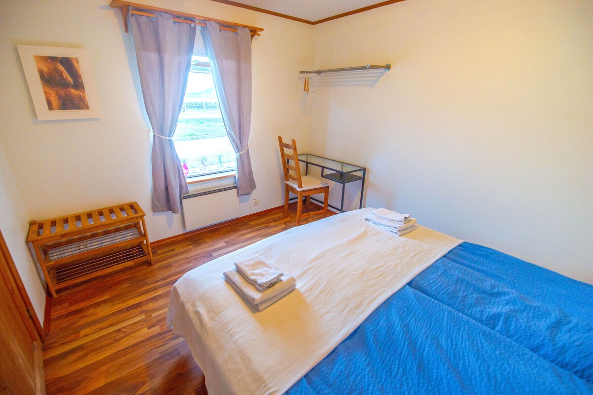 Welcome to our stunning riverside retreat in Ísafjörður! This magnificent abode offers a convenient location, within walking distance of the Bónus supermarket and a mere 3 kilometers away from the center of Ísafjörður. Prepare to be captivated by the breathtaking fjord views from the balcony, providing an awe-inspiring backdrop to your stay. Our spacious two-story apartment boasts ample room for your comfort, featuring a luxurious corner bath with massage function, ensuring ultimate relaxation.