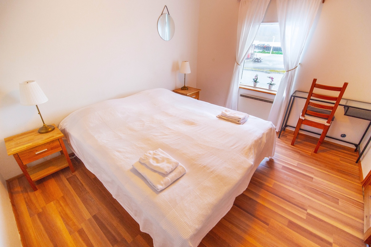 Heima is a very peaceful apartment located in Ísafjörður. It is located on a quiet street near the mountain. The house is located about 1 km from the main square. Heima is a house owned by a family that built it in 1962. Johann Kroknes, a carpenter from Norway came to Ísafjörður to build this house for his daughter Sigríður that was moving to Ísafjörður after marrying a local shrimp captain, Torfi. We are restoring it to the style that was in the sixties and welcome you to enjoy it with us!