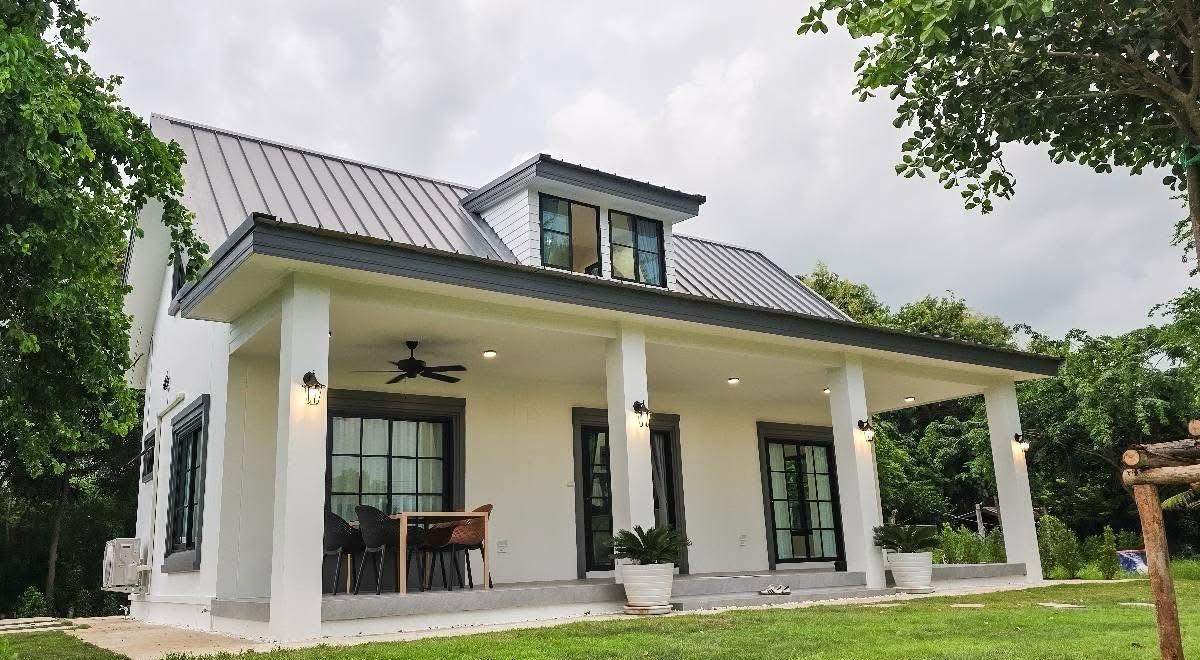 Stylish House Near the International Circuit This modern house is ideally located near Chang Arena (4.2 km), Chang Circuit Buriram (5.9 km), and Big C (1.5 km). The house: - Two high-quality bedrooms with comfortable queen-size beds - Two bathrooms - A living room - A fully equipped kitchen with a washing machine - 500 Mbps Wi-Fi and cable TV - Complimentary coffee and drinking water The two bedrooms are located on the SECOND floor, while downstairs you will find the living room and kitchen