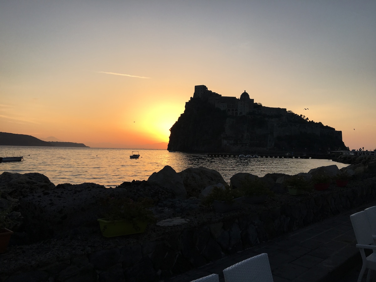 La mia splendida casa e'accogliente completamente ristrutturata con un terrazzo che affaccia sul mare..può ospitare comodamente due persone con figli posizionata sulla spiaggia di Ischia porto (pieno centro!)A pochi passi dalla via dello shopping e da ogni tipo di svago ideale per godersi una vacanza dal sapore ischitano !!