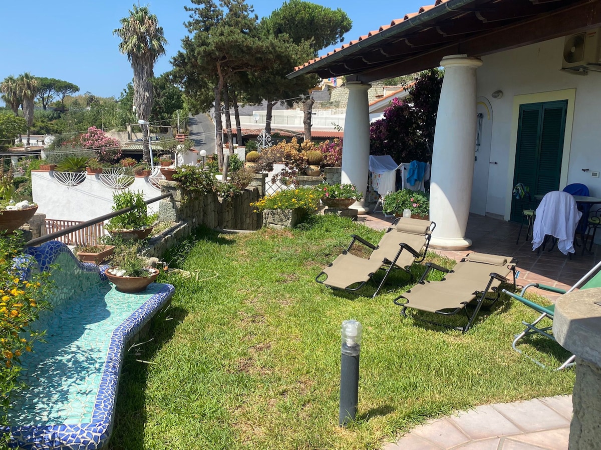 Casa Amena, suspended between the sky and the sea, located on the hill of “Neso” (Oneso) which overlooks the town of Lacco Ameno, worldwide famous for its thermal waters. It is near the ancient Villa Zavota which now is known as Villa Parodi Delfino. Giuseppe Garibaldi, stayed there in 1884 to recover with the aid of the thermal waters from the wounds suffered during the battle of Aspromonte. Our House offers small apartments, completely furnished suitable for families. - living room equipped with a with kitchen corner . - master bedroom - spacious bathroom with shower -lush mediterranean garden: lawn/ solarium/barbecue, vegetable garden, fruit trees, citrus trees and vineyard over 2000 m2 The furnishings are functional, modern and well looked after -the kitchen is fully equipped in order to fix your own breakfast or other meals -parking available for motorbikes and cars -Our Apartment is located in a very quiet spot however it is only 5 min on foot from the town of Lacco Ameno, with its thermal spas, shops, beaches, the marina and museums. It is also near the main port of Casamicciola. Andrea Mennella is here to welcome you! ________________________________________