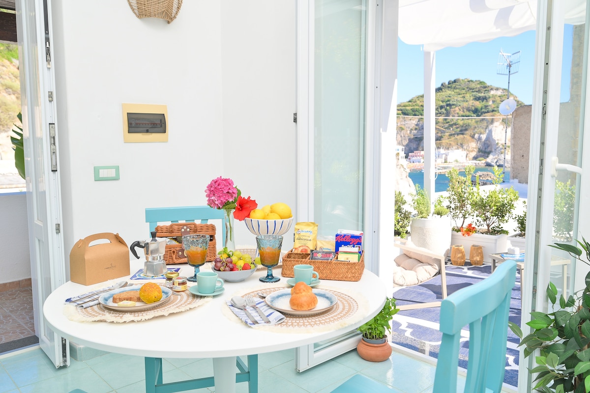 Il Pollaio is the signature house of Casa Via Costa in Forio, the largest and most scenic space of the property. A bright open living area features a stunning glass wall overlooking the bay of Citara and a central fireplace for cozy evenings. Surrounded by gardens, it blends elegant Mediterranean décor with generous spaces. From May to October guests enjoy pastries, fruit, yogurt, coffee and daily housekeeping. In other months it is self-catered. Wi-Fi, air conditioning and parking included.