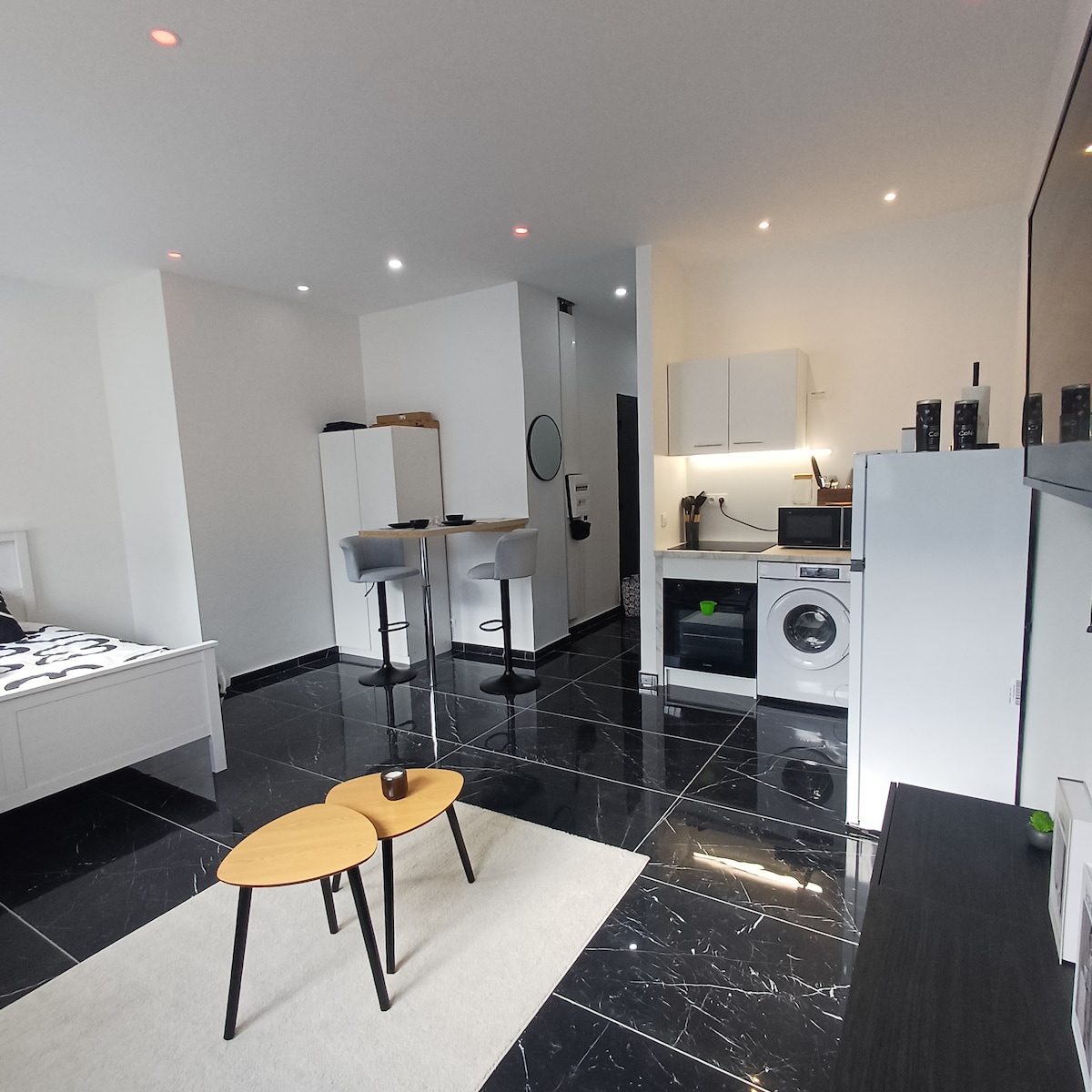 Studio lumineux entièrement refait à neuf ! ☀️ Logement à deux pas de la gare, proche de l'hyper-centre et de toutes les commodités. Immeuble avec ascenseur, calme, récemment rénové et totalement sécurisé. Entièrement équipé : lit queen size, machine à laver, lave vaisselle, machine à café, four, bouilloire, grille pain, sèche cheveux, fer à repasser, ...