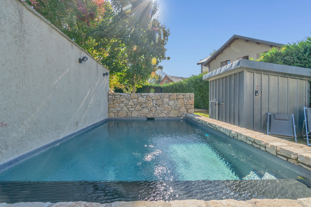 Meublé de tourisme classé 3 étoiles, situé à Saint-Cassin, en Savoie, au cœur des Alpes, à 10 minutes en voiture de Chambéry. Profitez d’une expérience bien-être avec piscine intérieure chauffée (29 °C), jacuzzi et sauna privatifs, en usage exclusif 24h/24. Le logement offre une atmosphère zen d’inspiration japonaise, alliant calme, minimalisme et matériaux naturels, avec vue panoramique sur les montagnes et la ville, idéale en toute saison. Hébergement déclaré en mairie, conforme.