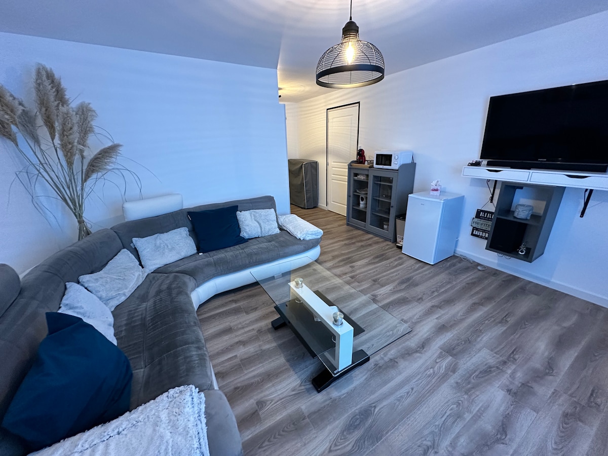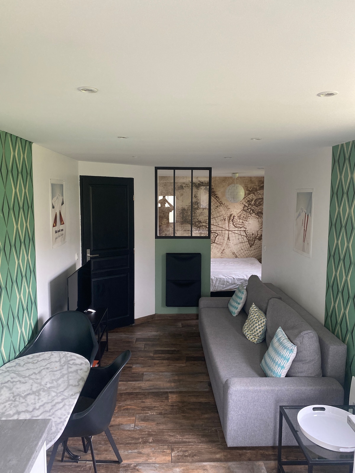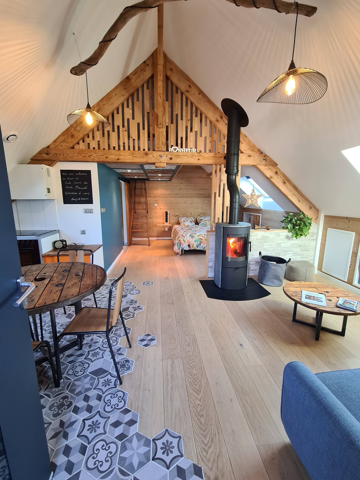 Retrouve-toi dans ce havre de paix à l'étage, idéal pour un séjour en toute indépendance. La chambre de 25m² te séduira avec son lit queen size de 160x200 et son ambiance cosy. Le coin salon et SPA est parfait pour se détendre après une journée de visites. équipements: micro-ondes, machine à café, Frigidaire TV écran plat Wi-Fi Parking privé sécurisé Parure de lit et linge de toilette fourni. Petit déjeuner maison en supplément de 10€/pers SPA 30€ pour 1h30 à partir de 6 ans et 50€ l’hiver