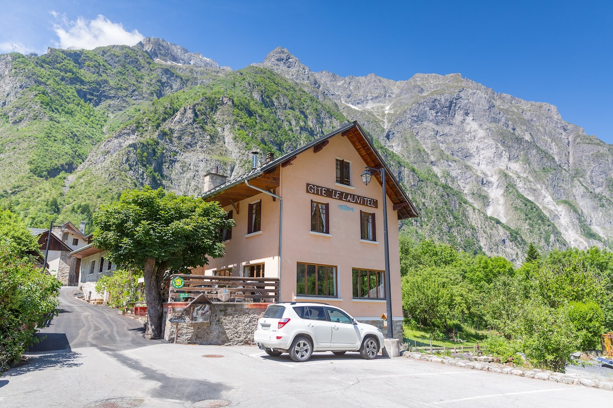Our classic rooms at the Lauvitel Lodge are simple, cozy, very light and peaceful in the little hamlet of La Danchere. you have a private bedroom with sink and a shared bathroom/wc in the hallway. Incluse in the price you have breakfast. You can decide to have a 3 course dinner (for 25 euro) with us; booking in advance for dinners is appreciated. The prices are per person per night with the tourists tax included in the price.