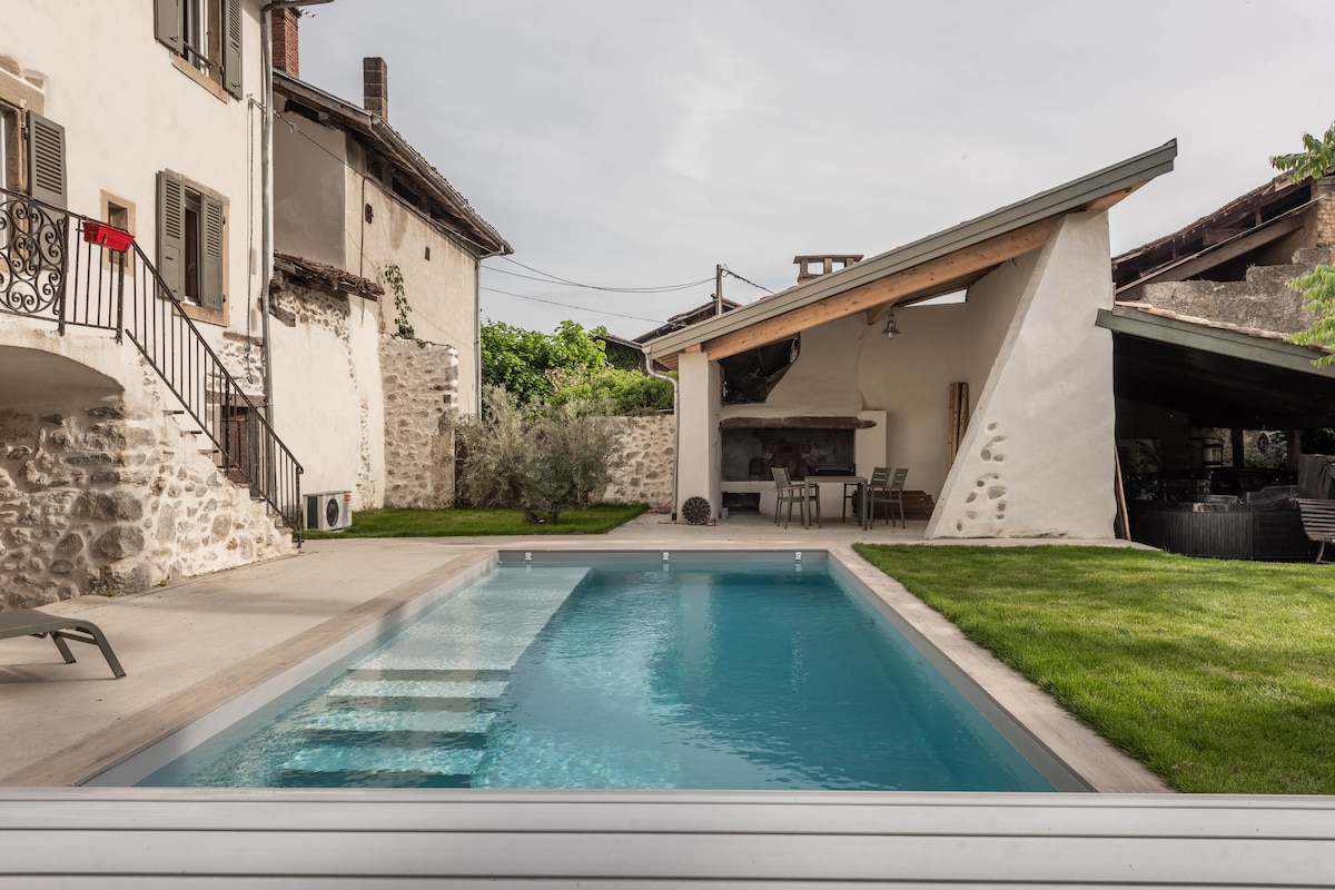 Notre maison d'hôte s'appelle : la ferme saint pierre Drôme. Il y a votre gite et 2 suites de 50 m2. C'est situé dans l'ancienne ferme magnifique du 18e siecle. Votre gîte de 50m2, est complètement autonome ; Vous disposez aussi d'un espace sous une tonnelle pour déjeuner dehors. La piscine vous est accessible, dans un magnifique jardin avec vue sur le Vercors. Des ballades à pieds en sortant et sur le Vercors à 10 mn. Centre village à quelques minutes et gare tgv à 15mn.
