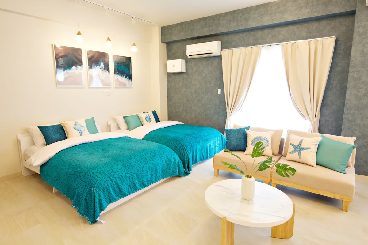 繁華街(美崎町)まで徒歩圏内の立地。 コンビニは徒歩1分。離島ターミナル徒歩10分。 1Fゲストハウスにて安心のチェックイン(鍵の受渡し)♪ wifiも完備し長期滞在からビジネス利用まで様々なシーンに対応。 お子様連れのファミリーもOK! ※お子様(未就学児)の添い寝は、最大4名まで可能です。 (小学生の添い寝は、対応できません) 2LDK+テラスのお部屋です。 テラスからはミントブルーの海。 石垣島の中心市街地で島人(しまんちゅ)のような石垣島ステイをお楽しみください。 《スカイペントハウス限定特典♪》 ・アーリーIN&レイトOUTが1時間無料! (14 時 IN /11 時 OUT が可能) ・スカイペントハウス専用駐車場1台あり(無料)