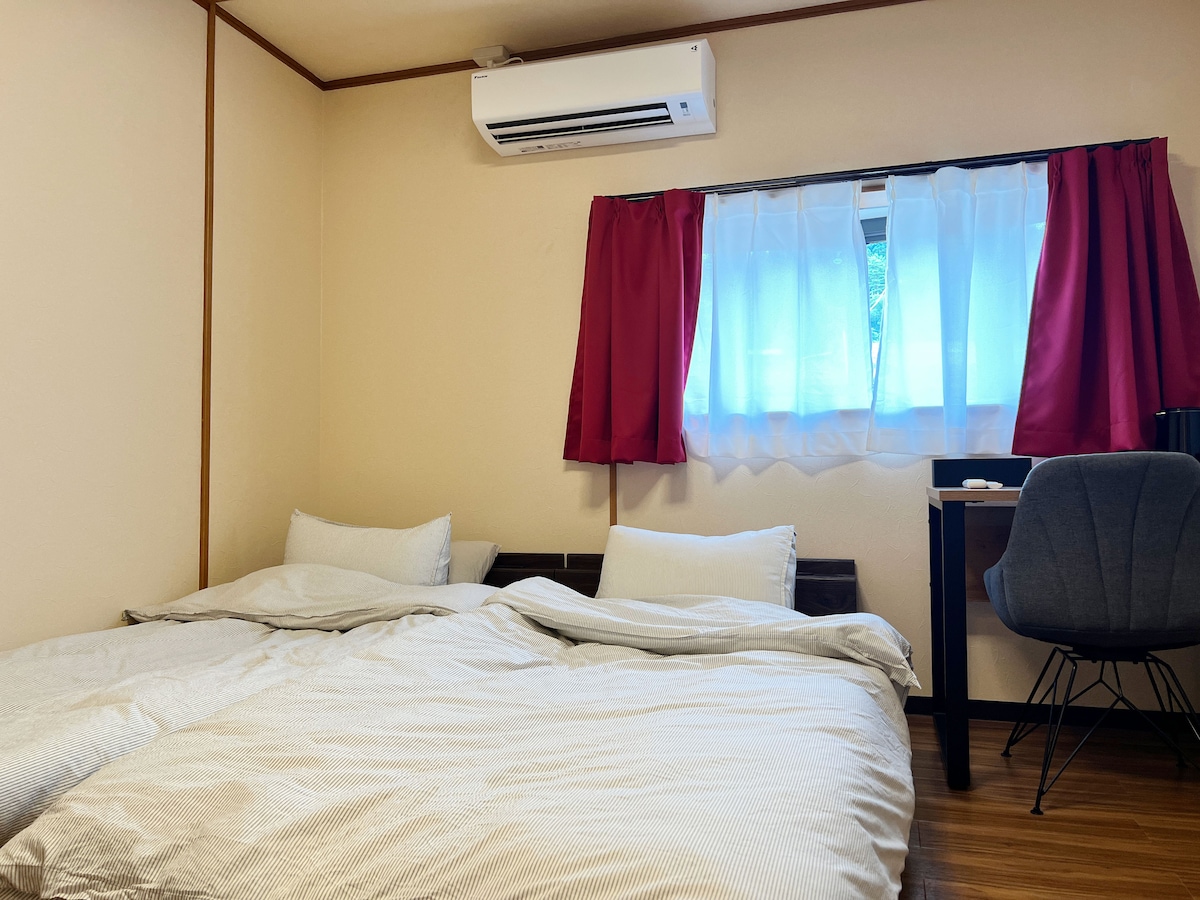 【個室】和室8畳の布団敷きのお部屋です。 昔ながらの旅館のひなびた雰囲気のゲストルームです。 エアコンはありません。夏は扇風機、冬はファンヒーターのみご用意します。 風呂・トイレ・洗面はお部屋には備わっておりません。 共用のものをご利用ください。 滞在中お掃除は行いませんので、連泊の場合セルフで清掃をお願いします。 < ご注意とご案内 > ・自然豊かな立地の為カメムシが出ることがあります。対策は行っておりますが異常気象などの影響で大量発生しているため対策のしようがありません。ご理解の上ご利用ください。 ・リビングのみリノベーションを行っております。客室は築40年以上の古宿のままです。 ・チェックインは施設目の前徒歩10秒の姉妹ホテル「一里野高原ホテルろあん」にて行います。 ・アメニティは料金内に含まれていません。歯ブラシ、浴衣、タオル、バスタオルなどのアメニティを有料でご用意できます。 < 周辺観光 > ■一里野温泉スキー場徒歩1分 ■白川郷・金沢まで車で1時間