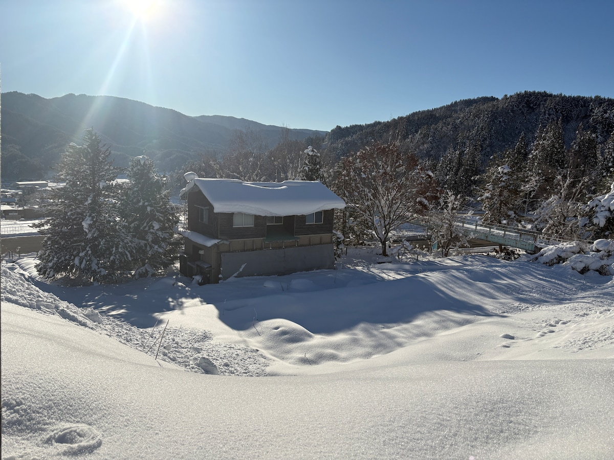 可携带宠物。宽敞的古民宅整栋出租。柴火炉。滑雪场就在附近。最多可容纳10人。距离金泽50分钟。还有温泉。