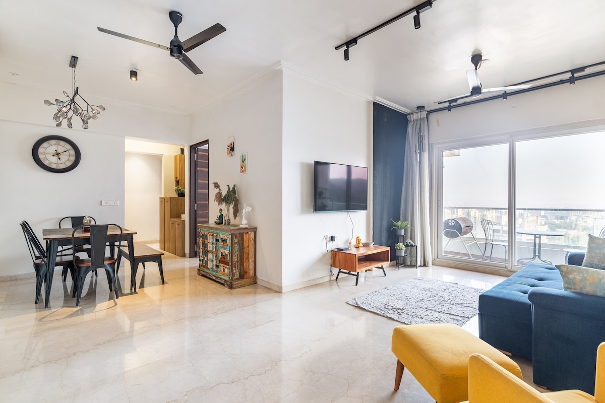 Enjoy a stylish experience at this centrally-located house which is a stone's throw away from Kharghar hills. It’s very close to both Utsav Chowk and Shilp Chowk. Present on the 23rd Floor, it gives incredible views of the hills, and city and yet will give you that peaceful break you deserve. The place boasts a projector room loaded with a sound bar, Amazon fire stick & most OTTs for one to relax and enjoy a night of movies and fun.