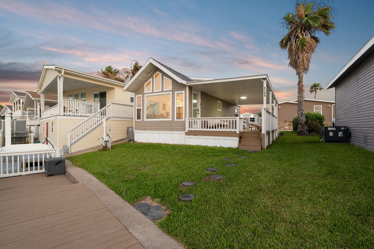 Enjoy the best the South Padre Island (SPI) area has to offer from this quiet and secure waterfront respite. This bungalow's backyard is the Laguna Madre. From our cozy serene home and dock, you can enjoy countless hours daydreaming or reading as you look out at the expansive lagoon, or do some bird watching, paddle boarding, kayaking, or fishing! From your water nest, you will be a short 15 minutes from SPI beaches, but far enough to get away from the crowds after a long day in the sun.