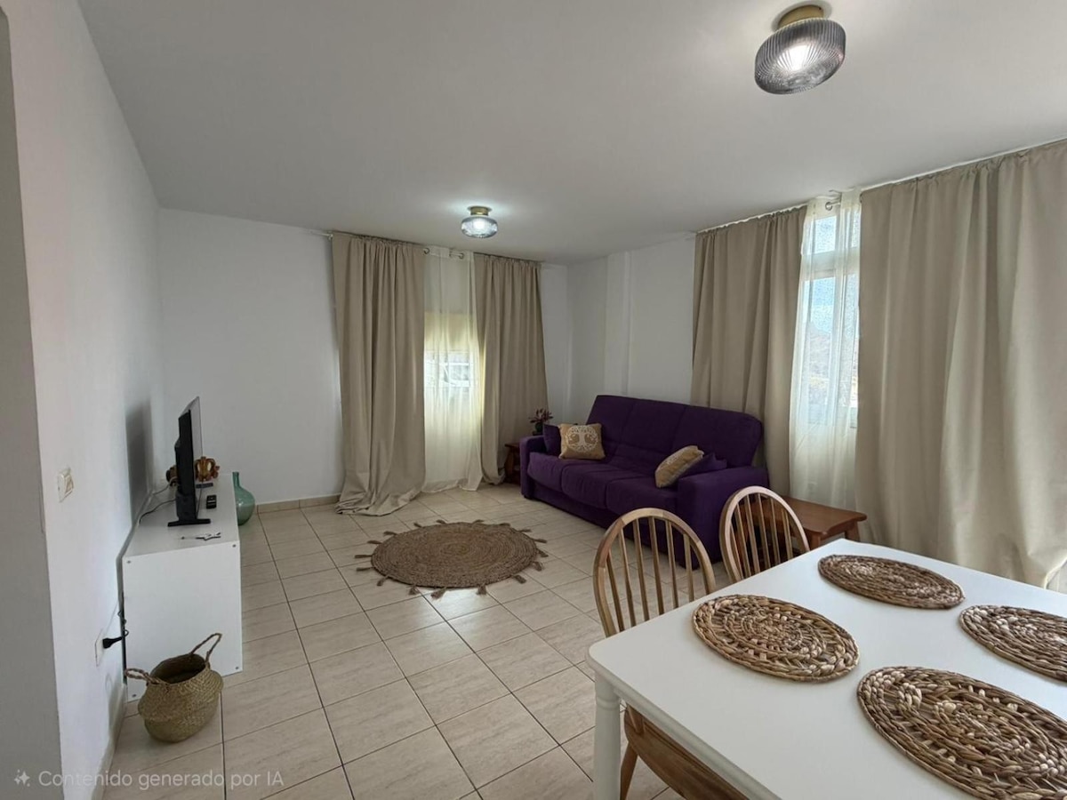 Apartamento Salitre La Caleta El Hierro, Canarias. Zona costera muy tranquila, salón, Smart tv 55', cocina con electrodomésticos, WiFi, lavadora, hab. grande cama matrimonio con tv, hab. pequeña con diván para dos personas, armarios grandes, suplemento cama doble hinchable, cuna y trona para bebé, baño completo con plato ducha, terraza grande con 2 hamacas, mesa y sillón exterior vistas al mar, piscinas naturales agua de mar a 100m, 2min del aeropuerto y 5 del Puerto. Aparcamiento en la puerta.