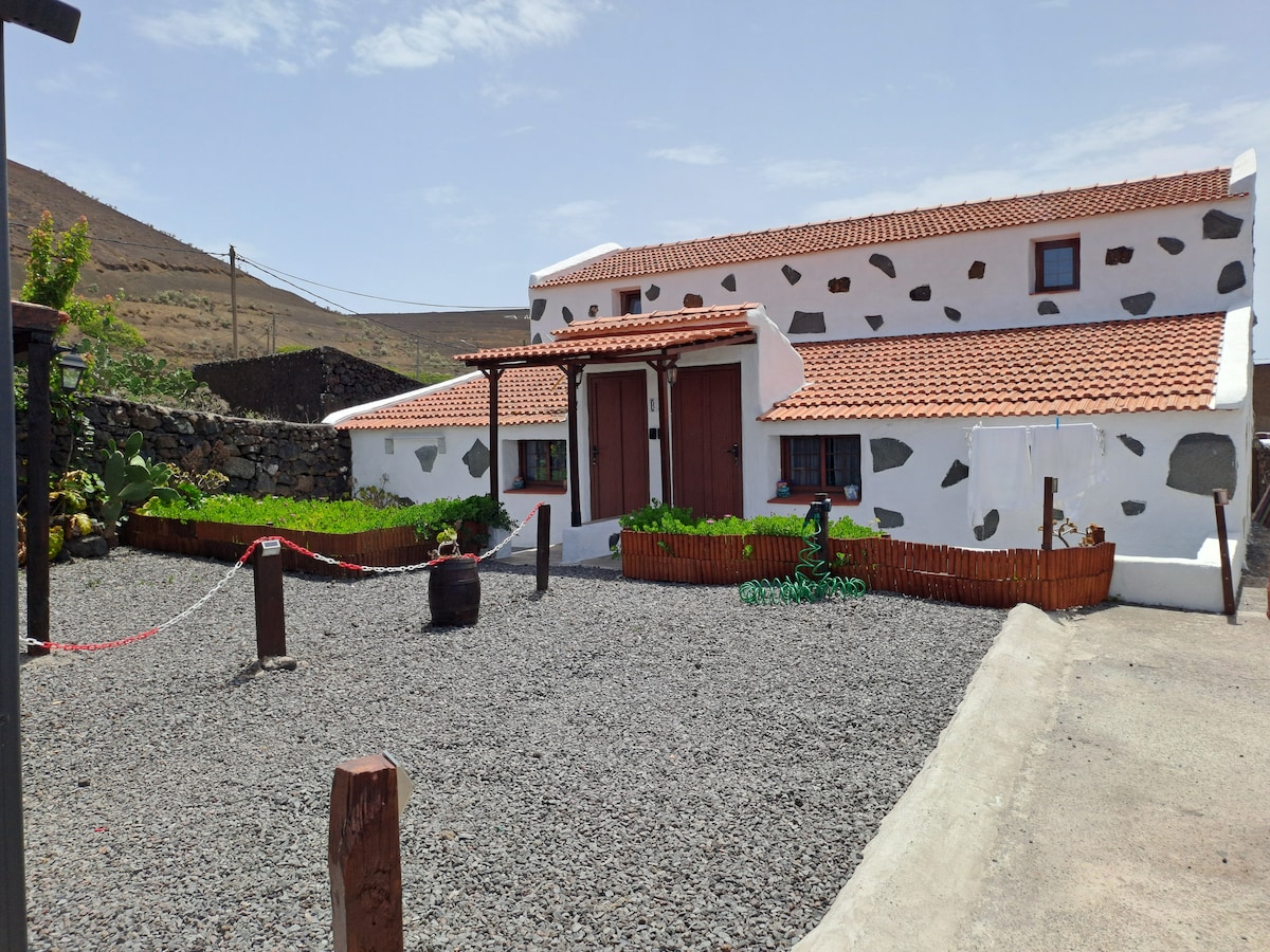 La vivienda se llama La Fuente El Rìo porque se encontraba una fuente con ese nombre. Esta ubicada en una finca de viña que se está rehabilitando y que se cultiva de manera ecológica. Hay ovejas, perros y gallinas que forman parte de la finca. Está céntrico, entre Valverde y Echedo. Podrás acceder desde ahí con facilidad a cualquier parte de la isla para visitarla.