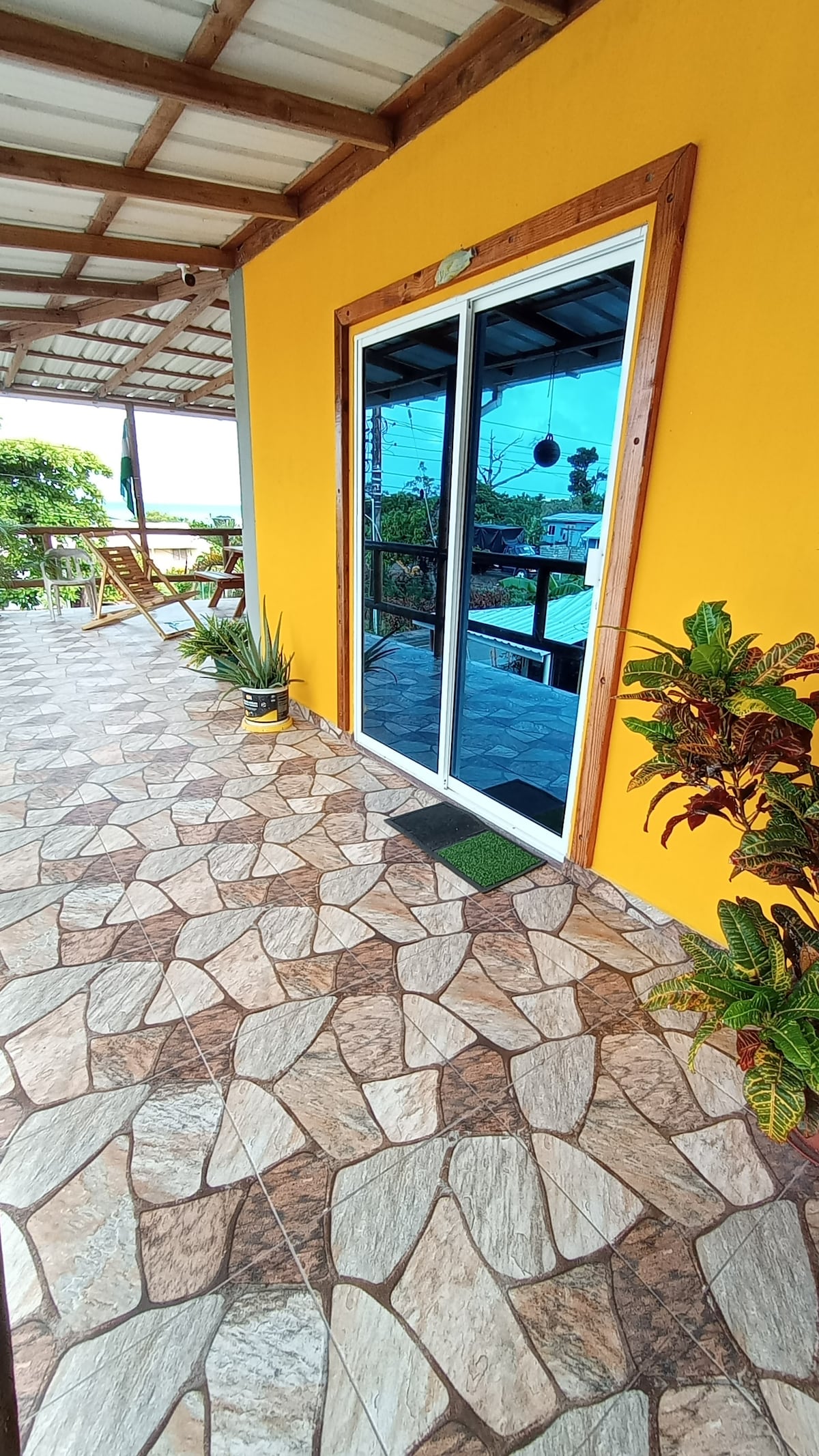 Casa en madera con vista al mar, dos habitaciones, baño, cocina, gran balcón y jardín. Ubicada en el sector de agua dulce, a 150 metros de la carretera circunvalar. Cerca de súper mercado, playa, centros de buceo y restaurantes. Es muy tranquilo y alejado del ruido de la carretera.