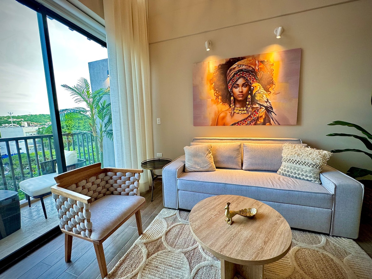 This beautiful new studio is located in the historical neighborhood of Getsemani, within the walled city. The building, which is brand new, is the perfect combination of comfort and caribbean elegance. The studio has a very comfortable balcony and a private ambient water jacuzzi to freshen up from the hot sun. It's in walking distance from the best sights of the city center; restaurants, bars, squares. Perfect for couples, solo travelers or a small group of 4.
