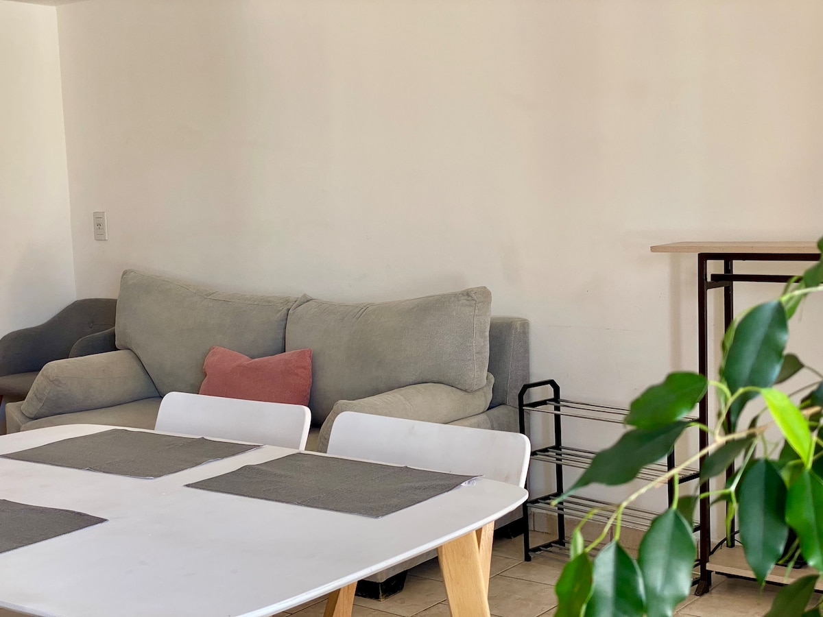 Bienvenido a nuestra encantadora mini casa, diseñada para convertir tu estancia en una experiencia única, Con una entrada independiente y un pequeño patio compartido, Ubicado cerca del aeropuerto y de la zona costera, el refugio perfecto para los amantes del trekking y la naturaleza. (PN 5Km) Parada de bus cruzado la calle, que te lleva al centro de la ciudad a tan solo 4.5km Disfruta de un Pequeño centro comercial a solo 300 mt. Esperamos darte la bienvenida pronto a tu hogar lejos del hogar