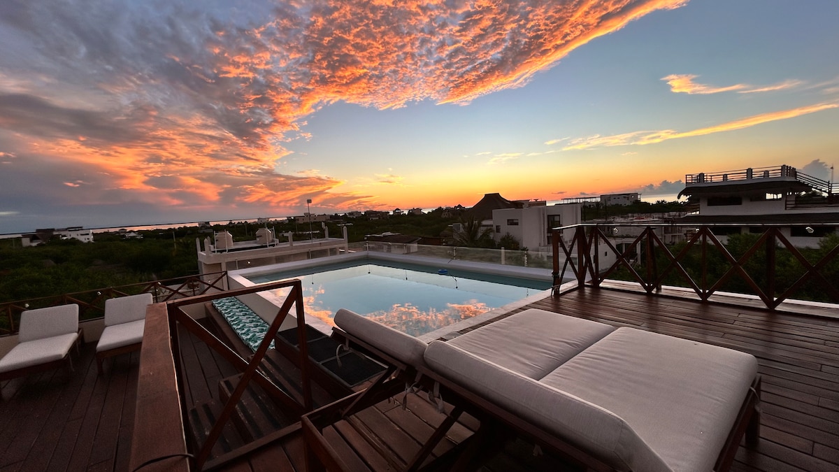 海滨顶层公寓,带私人泳池和日落景观