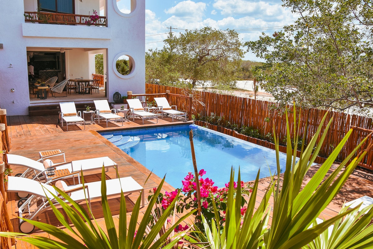 Casa Astral es un exclusivo hotel boutique en la mágica isla de Holbox. A solo unos pasos del mar y muy cerca del centro, combina lujo, naturaleza y tranquilidad. Disfruta de su rooftop con piscina infinita y vistas al Caribe, masajes relajantes y un restaurante en la arena con cocina fusión. Ideal para familias, parejas o viajeros que buscan descanso con estilo. Cada detalle está diseñado para una estancia inolvidable.