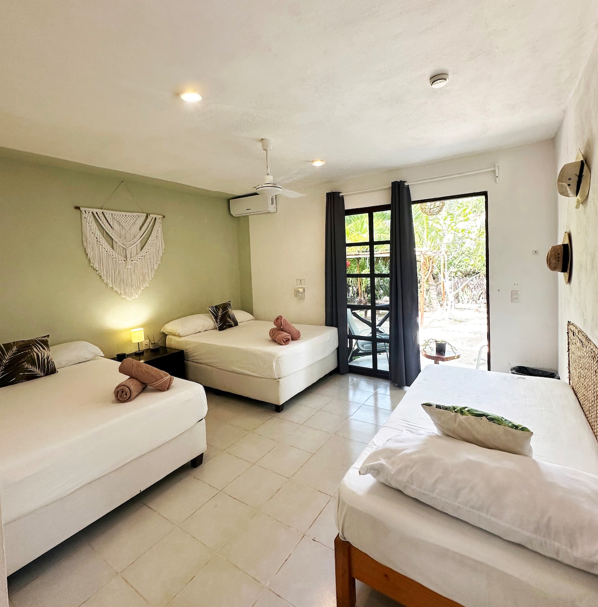 Disfruta de una habitación luminosa y cómoda en un hotel boutique de 10 habitaciones, a solo una cuadra de la playa y a 4 cuadras del centro de Holbox. Rodeado de naturaleza, este es un refugio que combina la paz de la isla con la cercanía a tiendas y restaurantes locales. Un lugar donde el confort, el hogar y la magia de Holbox se fusionan, brindándote una estancia única y una experiencia verdaderamente inolvidable.