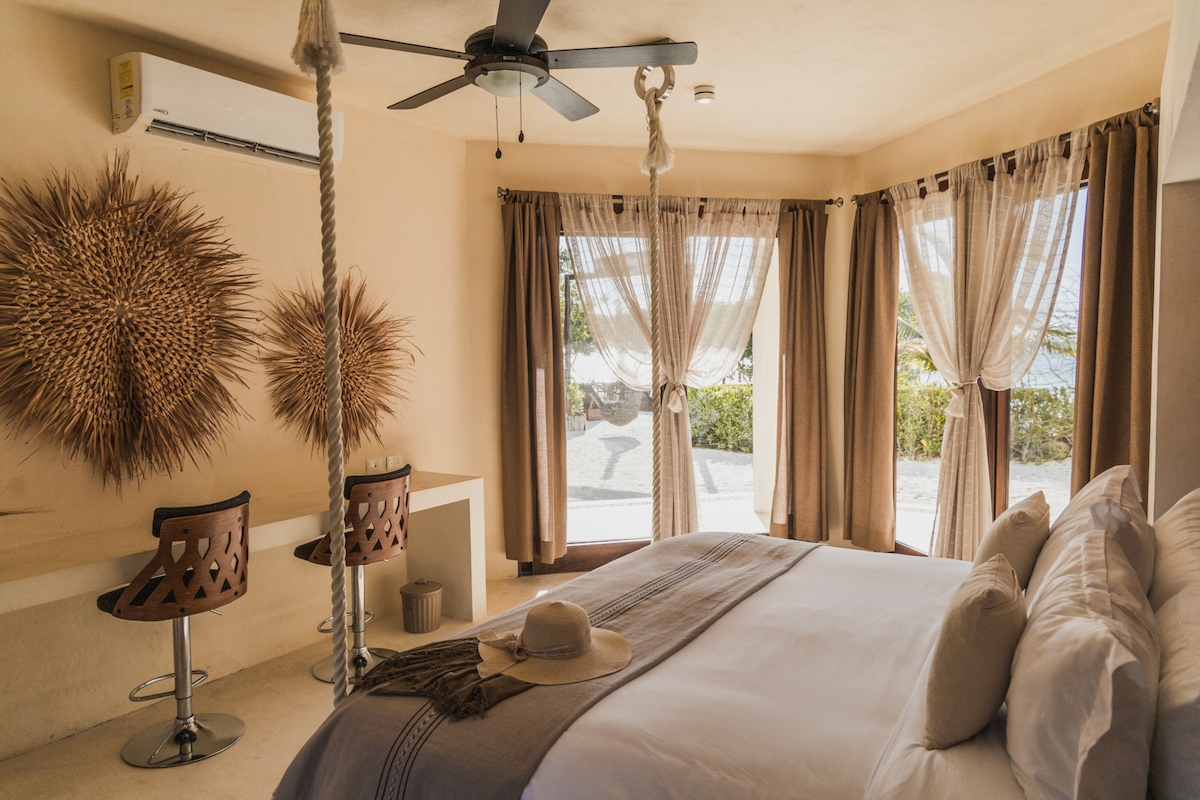 Nuestras habitaciones, son un oasis de comodidad y modernidad, ofreciendo un espacio sereno para relajarte después de un día de exploración en la isla. Ya sea que elijas sumergirte en la piscina, disfrutar del jacuzzi o caminar unos pasos hacia la playa, cada momento en nuestro hotel está diseñado para cautivar tus sentidos. Ven y descubre la armonía entre el diseño contemporáneo y la atmósfera relajada de Holbox en nuestro hotel. Tu refugio perfecto en el paraíso te espera.
