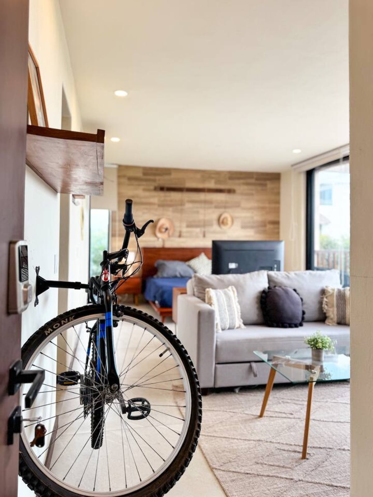 Large 1 bdr apartment Close to beach! “Amazing, quiet, a true hidden gem”, per previous guests. Quiet Large 1 bedroom private apartment, queen mattress, satellite Wifi. AC. Self checkin. Beautiful terrace, & palapa with Yucatan hammocks in tropical jardin. Close to beach - just 2 min walk through palm trees! Your private eco apartment, with queen bed, nice linens, & wooden French double doors to a large terrace. Bar kitchenette. Welcome Basket with free first morning’s coffee!