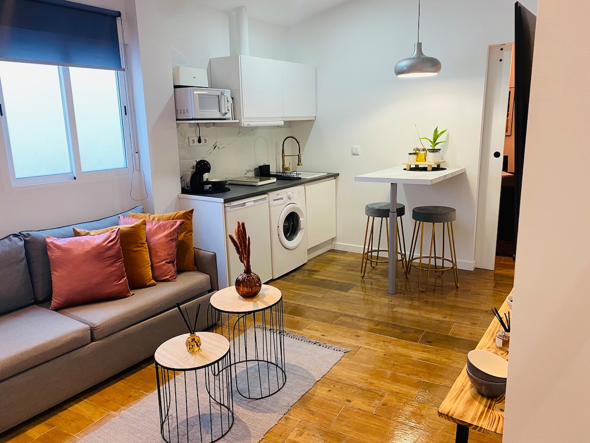 Sevilla tiene un color especial y sus calles están llenas de sol, alegría e historia. Esta ciudad va a enamorarte. Para que te sientas como en casa, te propongo un pequeño, pero confortable y acogedor estudio en pleno centro de Sevilla. El estudio es nuevo, moderno y funcional. El edificio es tranquilo y la cama es doble (135x190).Podrás explorar cada rincón caminando, a pocos minutos de la Catedral, Alcázares, Metrosol Parasol, Plaza de España y de los mejores y más emblemáticos restaurantes.