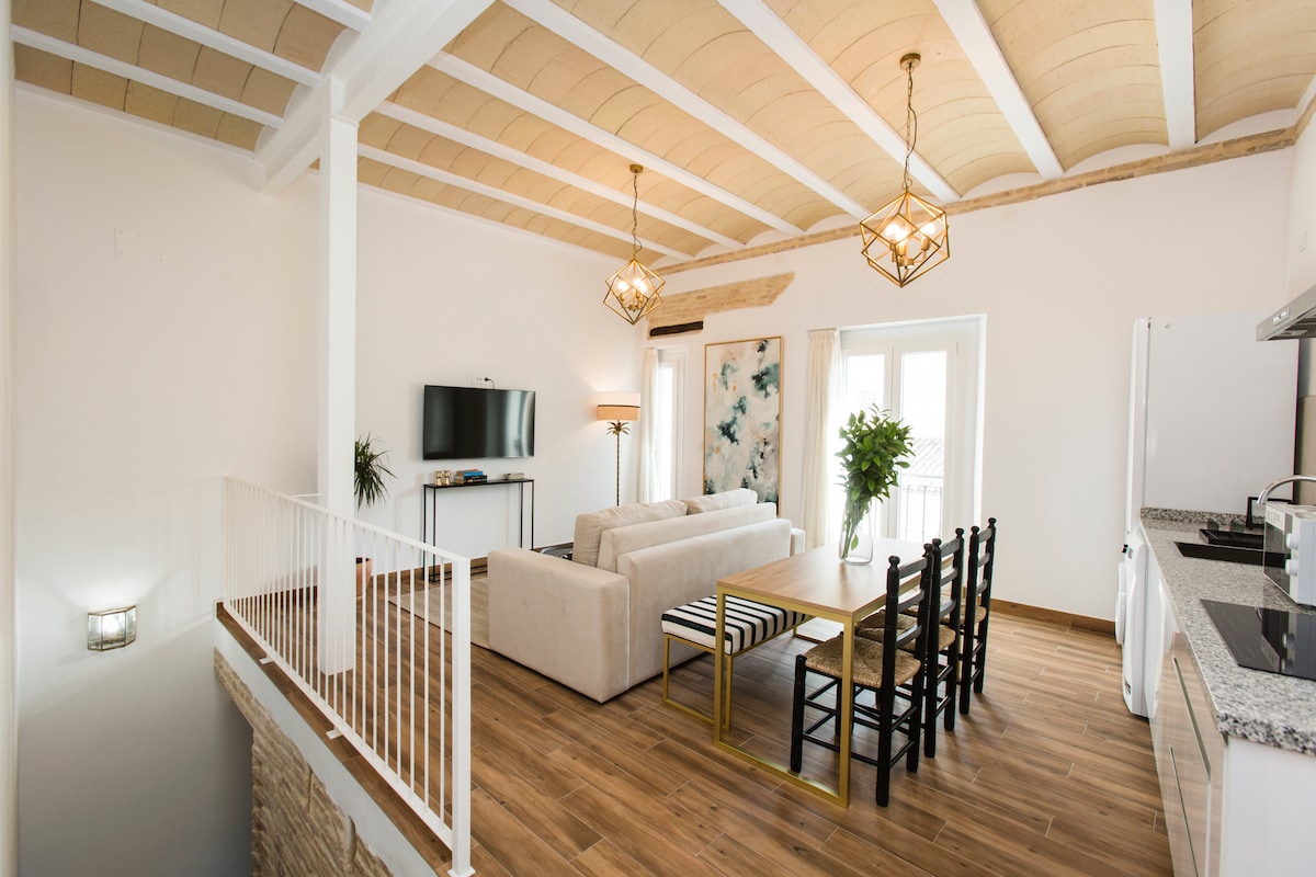 Apartment equipped with heating/air conditioning. Spacious, comfortable and perfect for the summer in Seville. It is built in an old house-palace completely restored and retains a 1-meter-wide exterior wall that insulates from heat and noise. Ideal if what you want is to be comfortable on your trip and live as if you were a Sevillian.