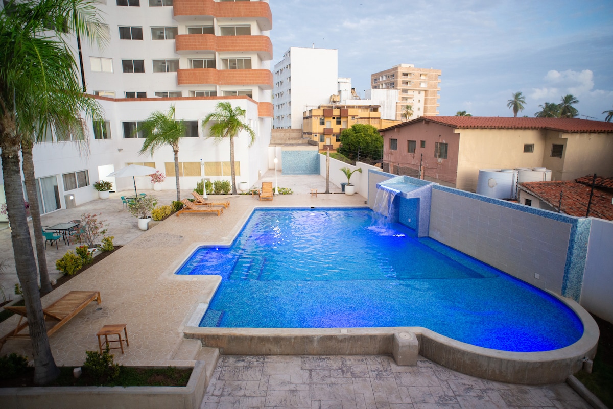 Disfruta del mágico sonido de las olas, la comodidad y la tranquilidad que te brinda este apartamento con hermosa vista al Mar Caribe. Situado en primera línea de playa a pocos pasos del Mar. Ubicado en un edificio tranquilo con piscina y cerca de zonas comerciales, playas y sitios de interés. Dispone de todo lo necesario para que tengas una estancia agradable; Wifi de fibra óptica, cocina equipada, aire acondicionado y agua caliente. El estacionamiento es privado y está dentro del edificio.