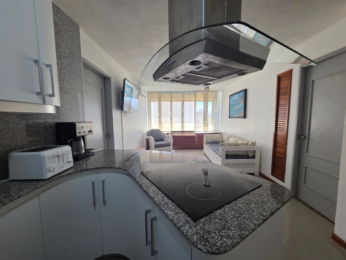 Disfruta del mágico sonido de las olas, la comodidad y la tranquilidad que te brinda este apartamento con hermosa vista al Mar Caribe. Situado en primera línea de playa a pocos pasos del Mar. Ubicado en un edificio tranquilo con piscina y cerca de zonas comerciales, playas y sitios de interés. Dispone de todo lo necesario para que tengas una estancia agradable; Wifi de fibra óptica, cocina equipada, aire acondicionado y agua caliente. El estacionamiento es privado y está dentro del edificio.