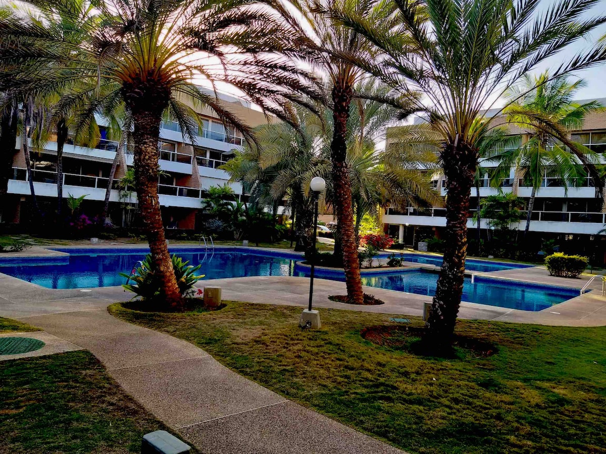 Ideal apartment for vacationing, located on Guacuco beach, it has 2 bedrooms, one with a double bed and the other with a bunk bed, a living room with a TV with Fire TV, WIFI, a sofa bed, it has a balcony where you can place a hammock, it has 1 full bathroom and a kitchen with electric stove, it has air conditioners in each room, in the social areas it has 2 swimming pools with beautiful views, a barbecue area with tables, it has access to the beach and a parking space.
