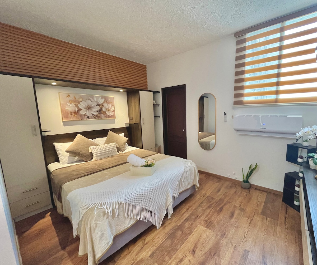 Modern minimalist-style apartment in Samborondón, located in a privileged area with 24/7 private security. Ideal for families or executives seeking comfort and tranquility. Right in front of El Dorado Mall. It features 3 bedrooms, each with a TV with Netflix and air conditioning. The living room includes a 65” TV. You also have 100 Mbps high-speed internet, perfect for working comfortably and enjoying a practical, relaxing stay.