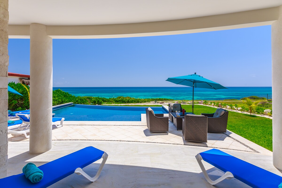Follow our Insta: lunaresorts to see celebrities that’ve stayed with us, Bella Thorne, etc. Villa Luna is a beachfront property, on the beach, w/ an amazing view of the Caribbean, 2 pools, a tennis court and a new game-room on the garage. With direct access to 2+miles of walkable beach and a big beach terrace in Cancun's exclusive Hotel Zone your every-desire will be fulfilled with our private pool, BQQ, hanging lights. Our 24/7 private security, and award-winning chef & staff will ensure luxury