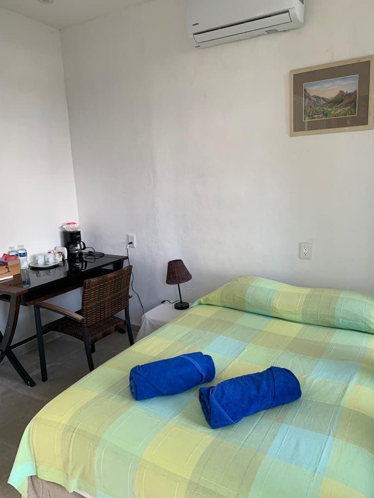 Estudio Libélula se ubica en una zona segura dentro de un fracc. con vigilancia 24/7. A menos de 5 minutos, hay zona de restaurantes, super, bancos, tiendas de conveniencia, el AEROPUERTO a 20 min y nuestra maravillosa ZONA DE PLAYAS a SOLO 15 MINUTOS en carro. Relajate con tu pareja o pequeña familia en este alojamiento donde la tranquilidad se respira. NO TIENE AIRE ACONDICIONADO, pero cuenta con dos ventiladores que permiten un ambiente agradable.