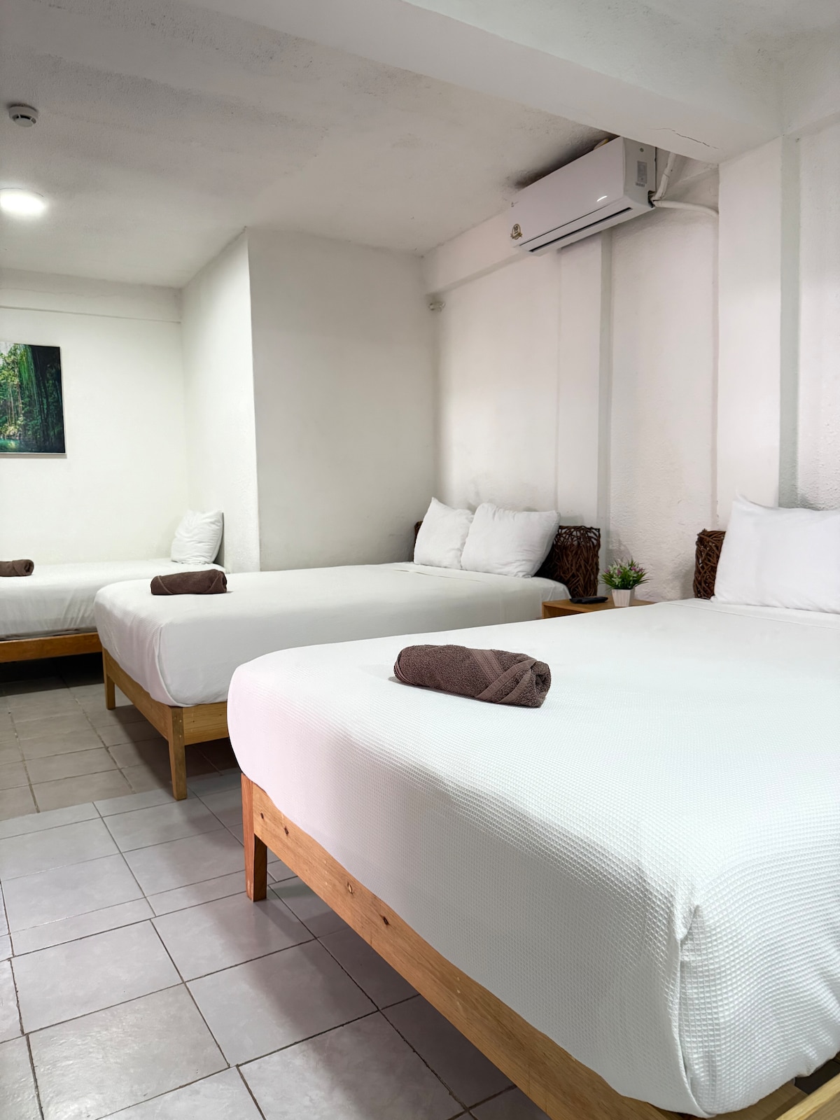 Disfruta de una acogedora estancia en Villa Sofía Holiday Accomodations. Habitación equipada con Dos camas matrimoniales, Aire Acondicionado, Smart TV, Frigobar, Baño completo, Closet, Bocina de sonido Alexa y Caja fuerte. Cancelación gratis, tarifa promo ¡Además uso de alberca y cocina compartida! Gran ubicación, les permitirá contar con centros comerciales, super mercado, restaurantes y a solo 10 minutos de zona hotelera Perfecta para parejas, nómadas digitales y viajeros de negocios-
