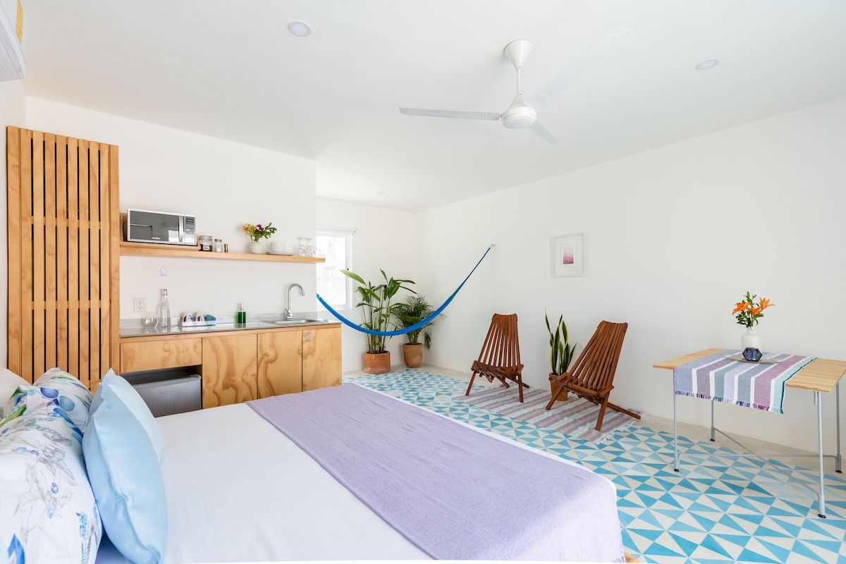 Just a 2.2. Km walk from the Puerto Juárez beach is this private studio located, ideal for getting to know the downtown area of Cancun and the quietest beaches in the area. You'll find just a steps away a local market, restaurants, coffee shops and the bus stop that will take you everywhere. - A solo 10 minutos caminando de la playa Puerto Juárez se encuentra este estudio privado, ideal para conocer la zona centro de Cancún y las playas más tranquilas de la zona.
