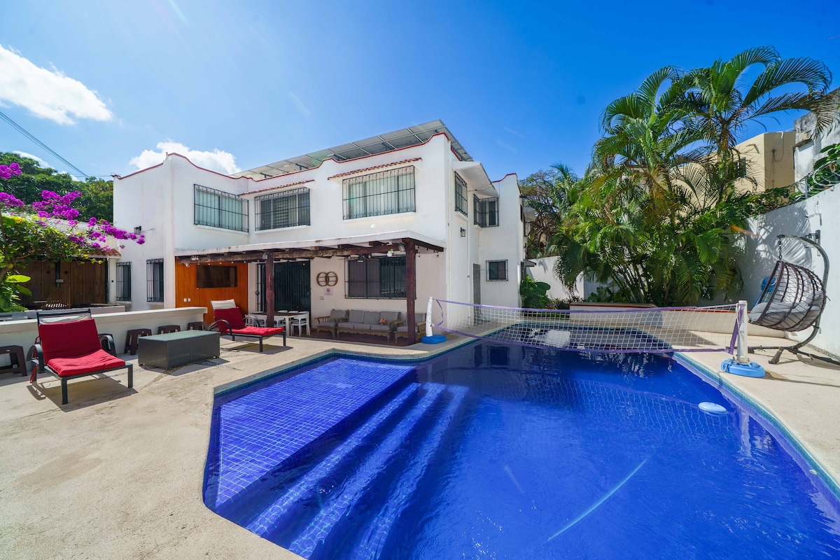 Diviértete en la piscina climatizada, y descansa en una de las increíbles 4 suites. Excelente ubicación en una zona residencial tranquila con todo tipo de comercios caminando. - Alberca privada con cascada y climatizada - 4 Suites con Smart TV de 60 pulgadas, A/C y baño en Suite - Cocina totalmente equipada - Seguridad 24/7 - Estacionamiento gratis - Wi-Fi rápido 300 mbps - Nintendo Switch con Super Mario *** Un traslado desde el aeropuerto GRATIS por estancias de 4 noches o más ***