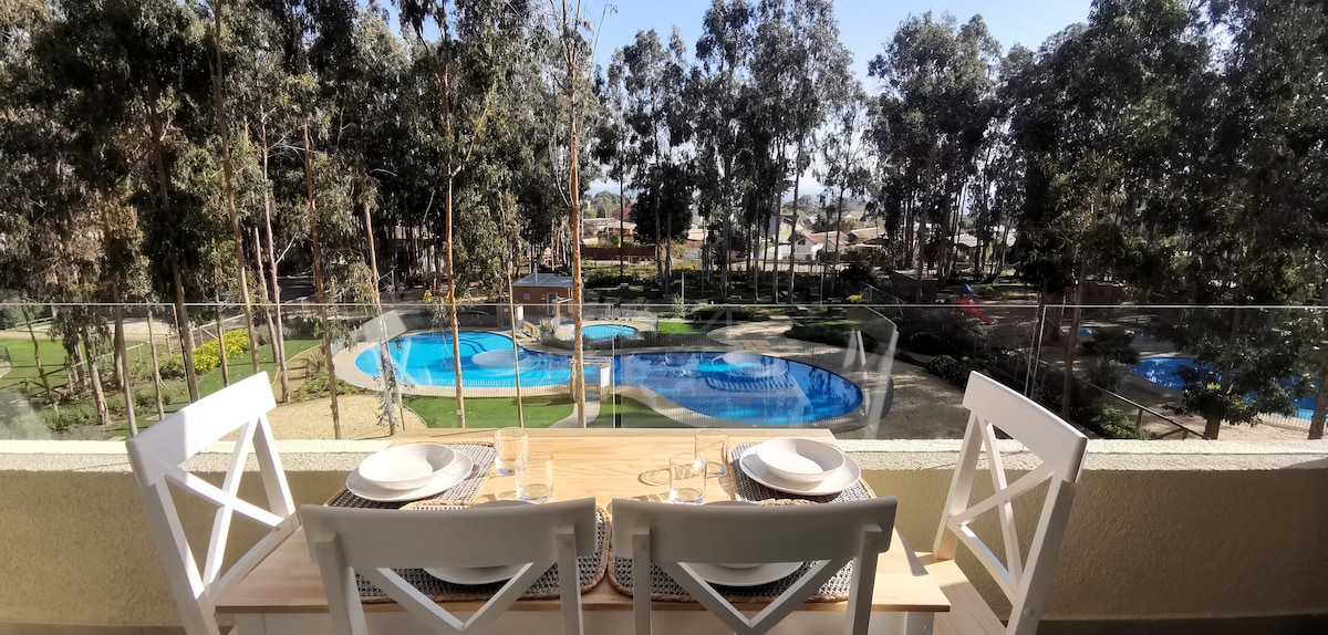 ¡Escápate a la tranquilidad de Algarrobo! Disfruta este moderno departamento, ideal para parejas, familias o teletrabajo. Ubicado en un exclusivo condominio, con acceso a piscina, quinchos y Hot Tub (cerrado temporalmente). A solo 3 minutos caminando de playa La Cueva del Pirata y 5 minutos en auto del centro. Incluye: • Terraza privada con parrilla a gas • WiFi rápido • Estacionamiento privado • Cocina equipada Rodeado de restaurantes, ideal para desconectar y disfrutar de la naturaleza.