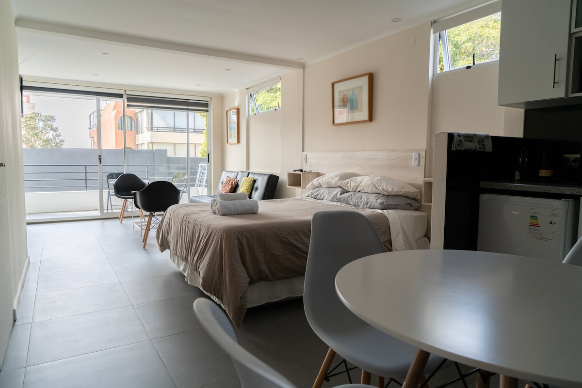 Küref Suites Algarrobo ofrece una ubicación privilegiada, a una cuadra del mar y diez minutos del centro a pie. Las suites son modernas, limpias, y muy funcionales, con un equipamiento ideal para disfrutar de un fin de semana en la playa de forma cómoda y tranquila. Cuentan con baño privado, agua caliente, ropa de cama, breakfast bar, y mobiliario completo. El acceso es autónomo, sin necesidad de esperar a alguien. Las suites no cuentan con cocina, ollas ni sartenes. No incluye estacionamiento.