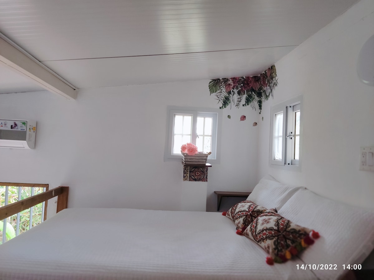 Suite con entrada independiente: estacionamiento techado, cama doble, baño sanitario, cocineta y escritorio. Tu espacio personal en el corazón de David. Cuenta con aire acondicionado tipo split, abanico de techo, TV con acceso a netflix, internet wifi gratis, cortinas black out, tanque de reserva de agua, agua caliente, cocineta equipada con estufa eléctrica, refrigerador, cafetera, microondas y utensilios básicos. No cuenta con lavandería, generador eléctrico y aislamiento acústico.