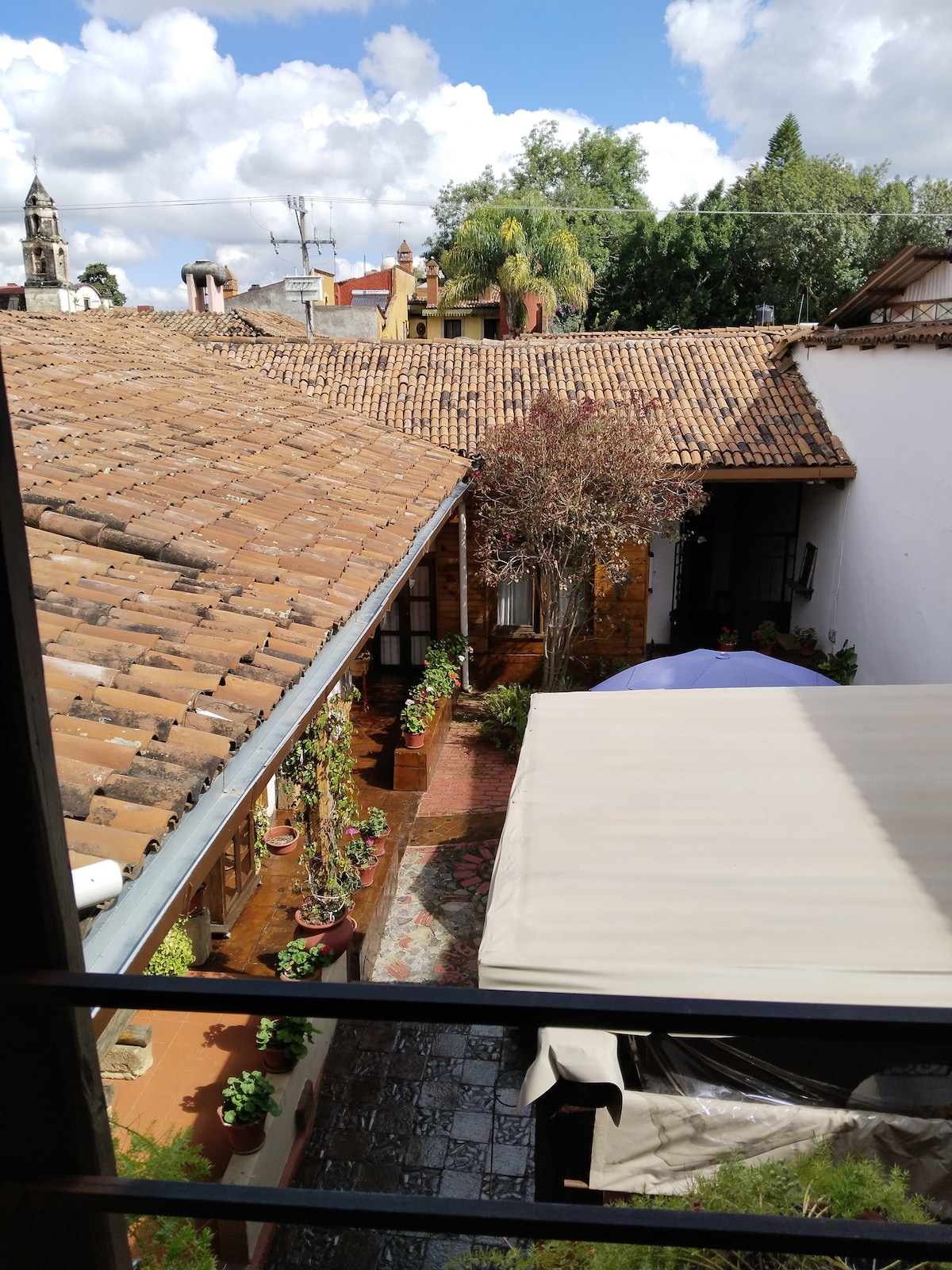 Disfruta de la sencillez de este céntrico alojamiento. Mi cabaña es para amantes del arte, la naturaleza y pasar un buen rato tranquilo, sin desconectarte al 100% del bullicio de Pátzcuaro. Cuenta con una habitación con baño privado, balcón, terraza con horno de leña (para hornear pizzas, pan artesanal o hasta un lechón). La sala es de piel, con sillones reclinables, y un sofá cama, con una chimenea. Cocina equipada con desayunador. Además tiene un comedor al aire libre y asador.