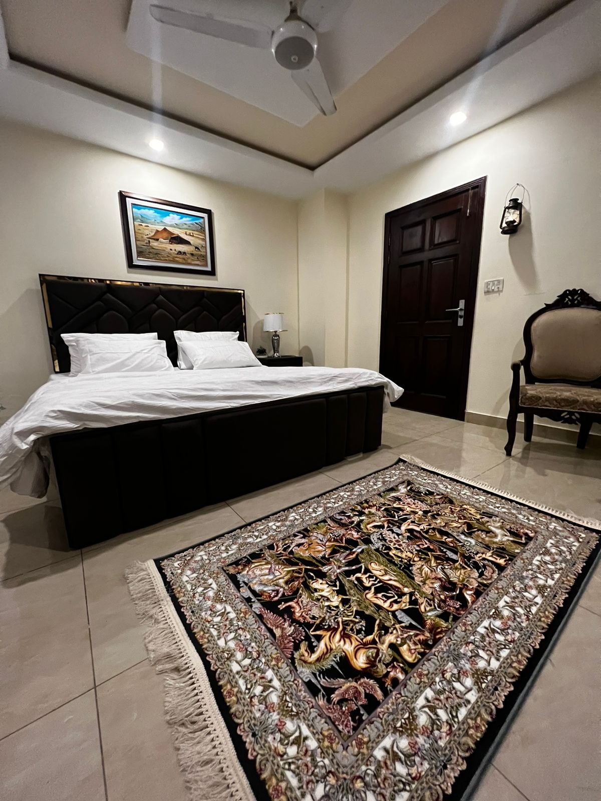Welcome to @blueoakresidences Spacious 1500 Sq ft apartment in F-11/1 Islamabad with 2 ensuite bedrooms each with a private attached balcony, Powder room, UPS backup, Fast WiFi, Self check-in, and a 58" smart TV. Fully equipped kitchen, hot water, free designated parking, 24/7 elevator. For groups larger than 4, we provide 2 extra floor mattresses to ensure a comfortable stay for up to 6 guests. Steps from Loafology, Nando's, Asian Wok, KFC, Al-Fatah. Family-friendly park right outside.